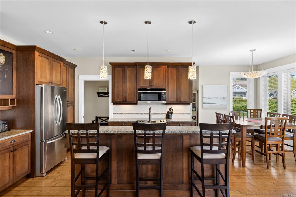 Welcome to the sought-after community of Qualicum Landing, where comfort and style come together in this beautifully finished 3-bedroom home. Just a short stroll to the beach and steps from the clubhouse, this residence offers a versatile main-level guest room or den, while the upper floor showcases a spacious primary suite with a spa-inspired ensuite. The gourmet kitchen features granite countertops, stainless steel appliances, and a generous island, flowing seamlessly into a bright living area with cat...