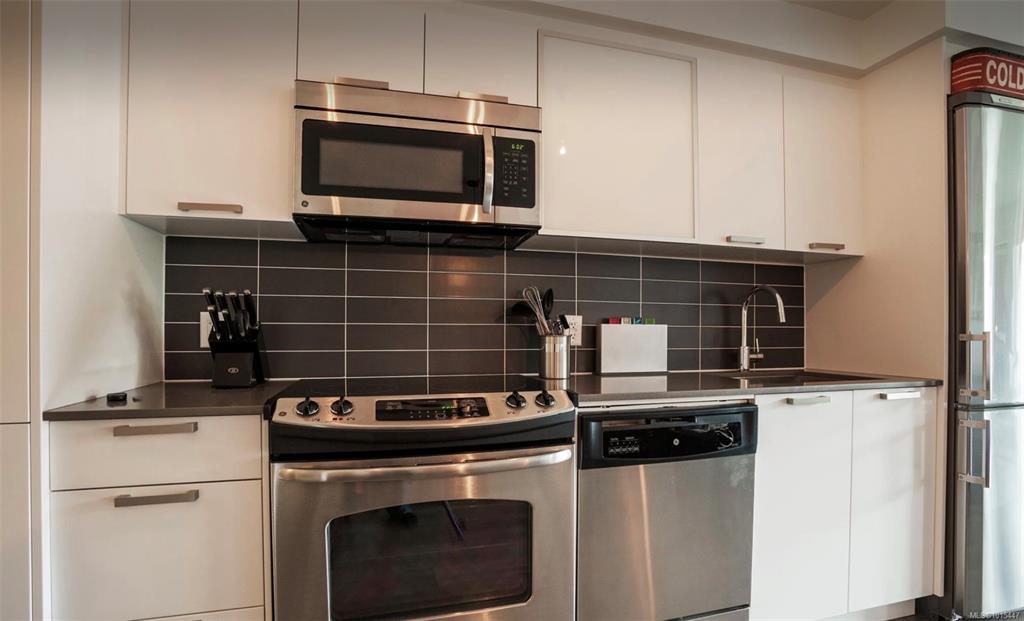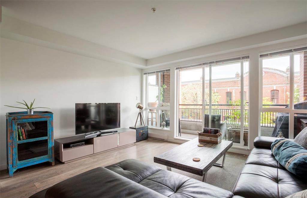 Welcome to The Union in Victoria’s historic Old Town District. This spacious south facing one bedroom flat features an open-concept layout with dining and living areas that flow into an inviting space to entertain. Floor-to-ceiling windows fill the home with natural light and open onto a private patio framed by beautiful exposed brick, creating a truly unique urban backdrop. Complete with laminate flooring, stainless steel appliances, in-suite laundry, secure underground parking, and a storage locker. You a...