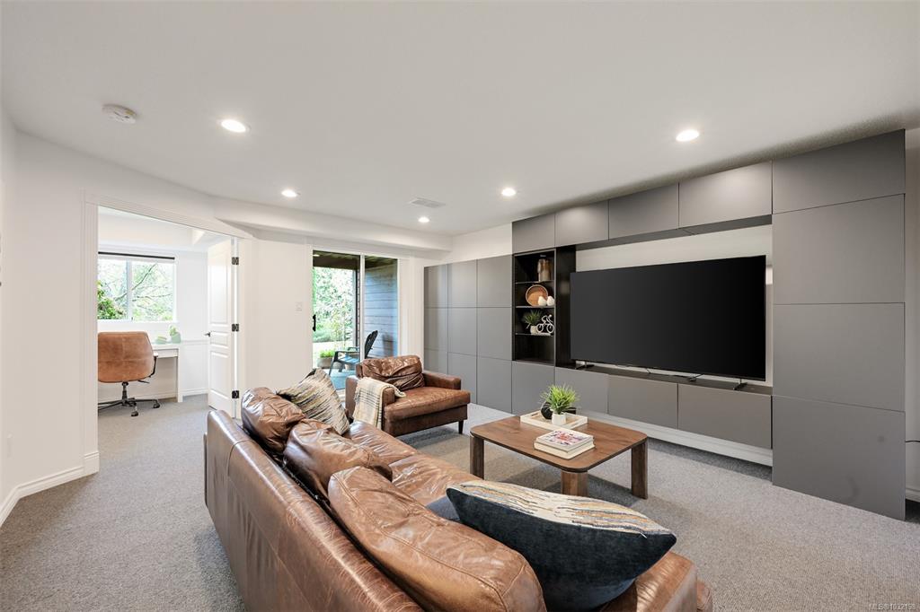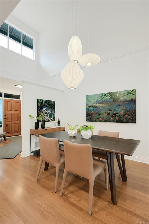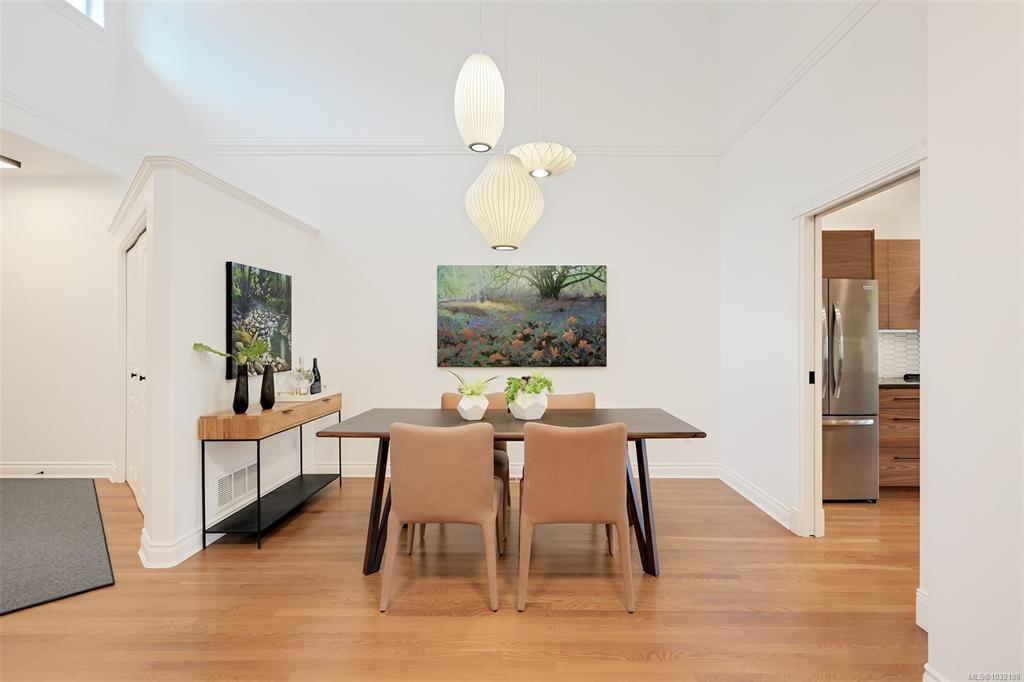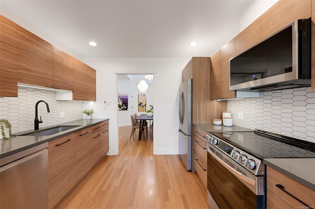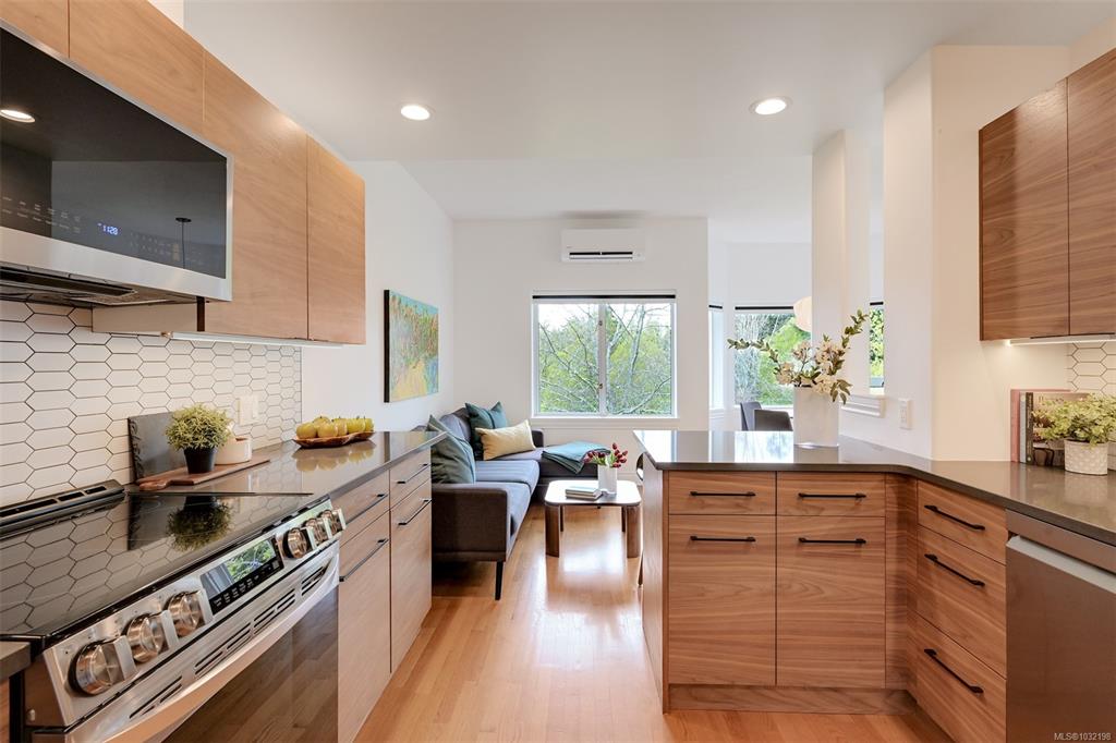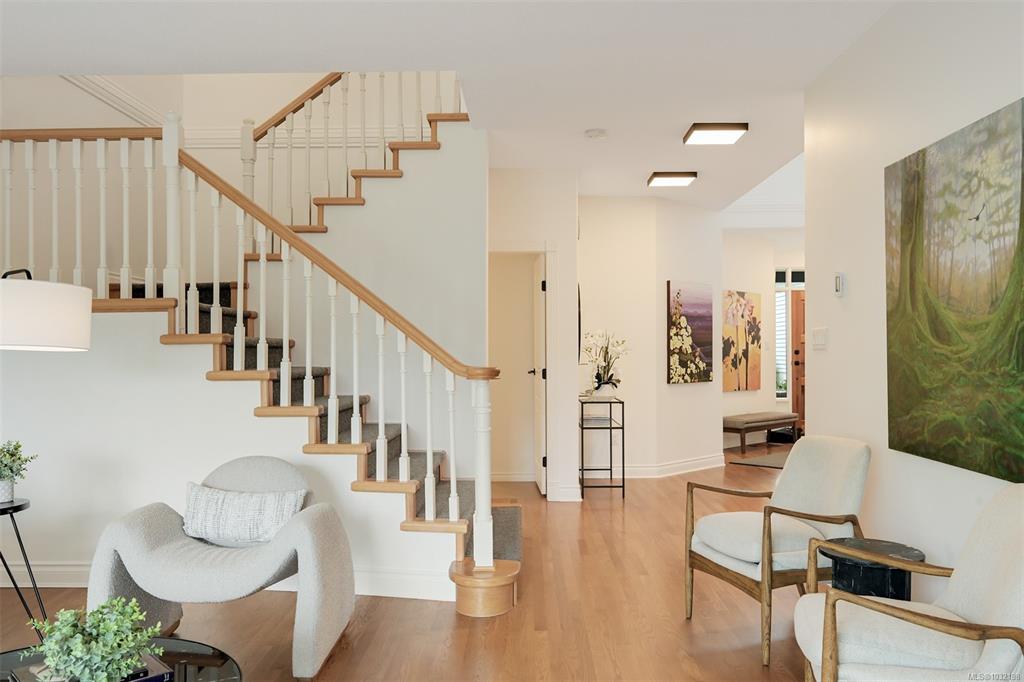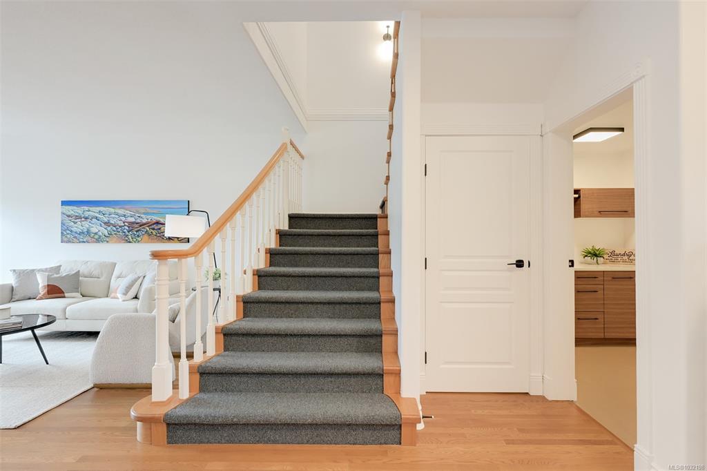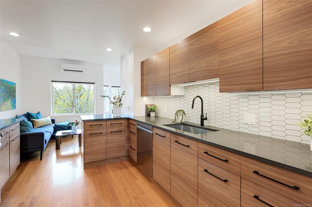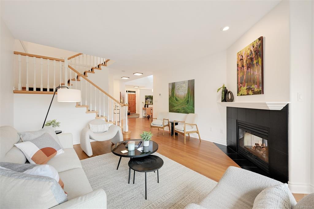 Tucked beside Elk and Beaver Lake, this 3-level townhome offers serene surroundings and refined modern living. Southwest oversized windows and balcony with gas bbq overlook new CRD parkland — a true bird watcher's paradise. Spanning 3,000 sqft. this 4 bedroom (one with no window), 4 bathroom home provides generous living space for all. Beautifully updated throughout: The kitchen showcases walnut cabinetry, quartz countertops, and new appliances. Refreshed laundry room and powder room, wool carpets, designer...