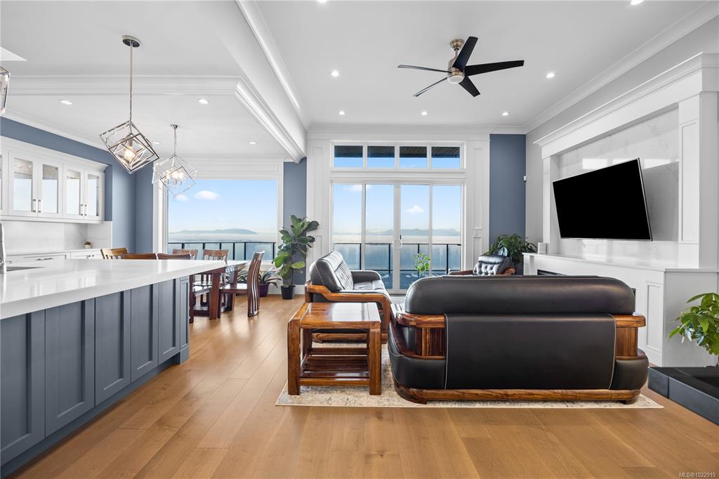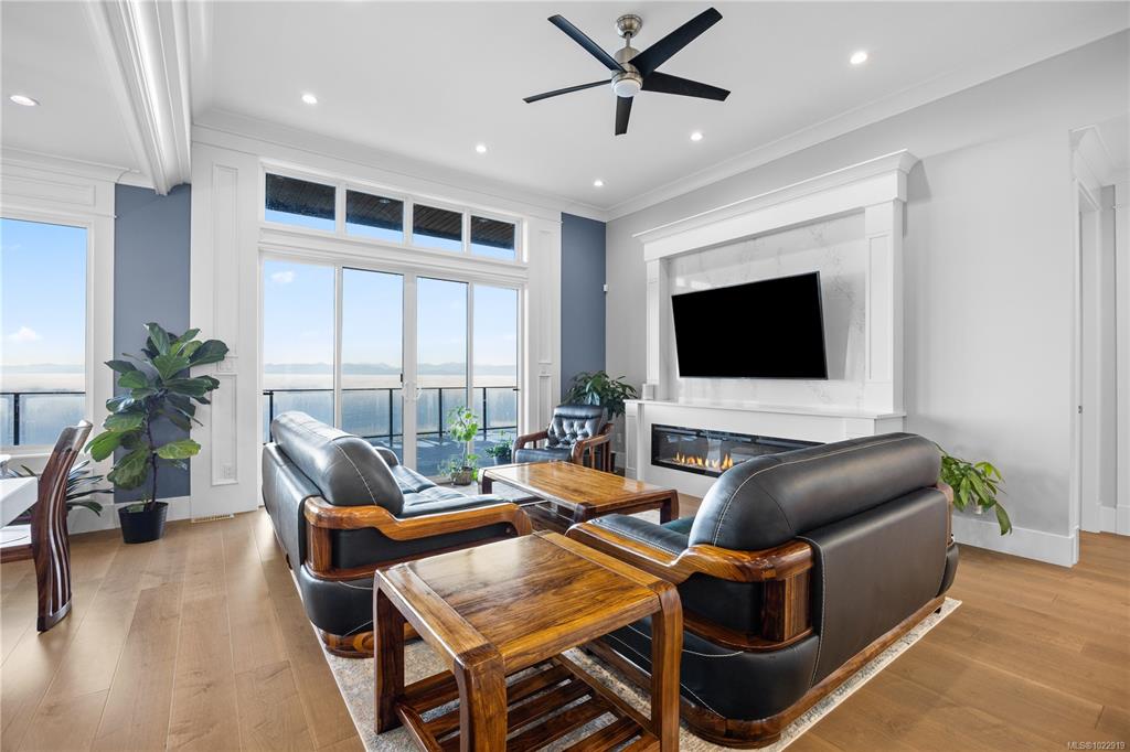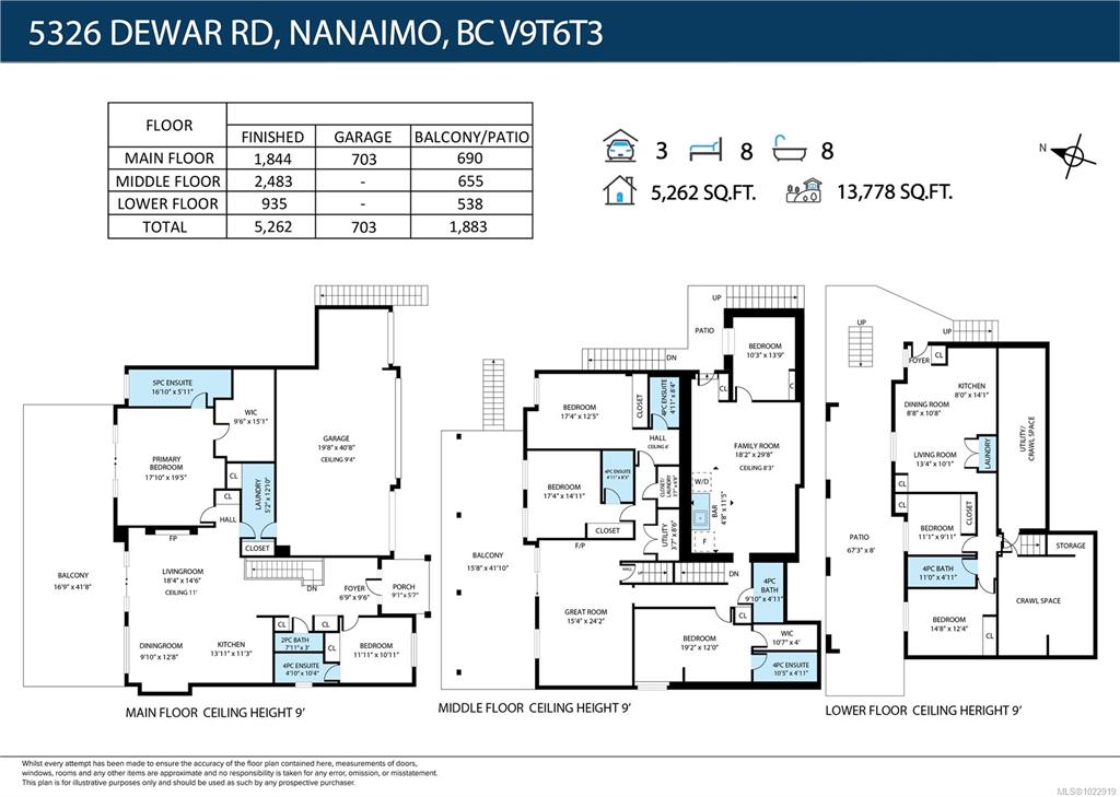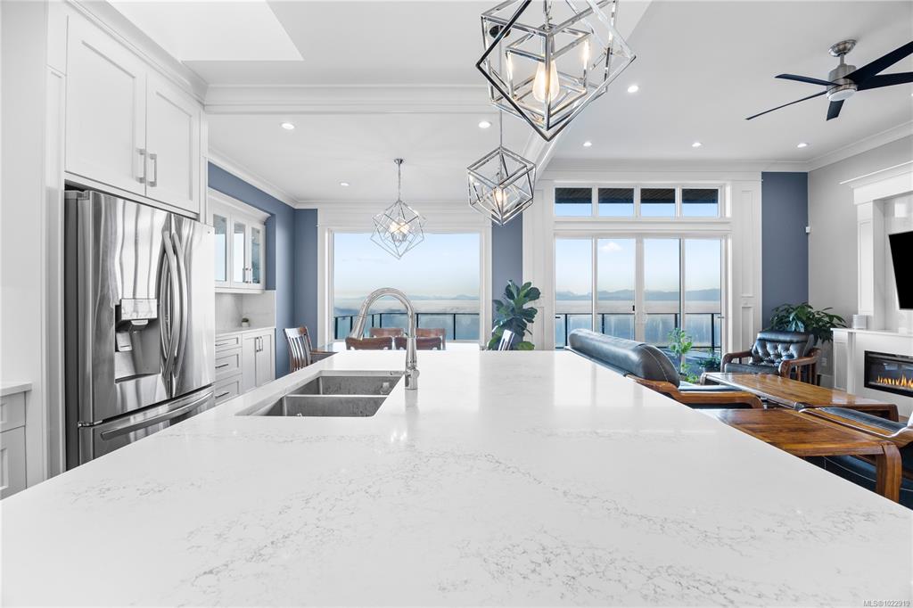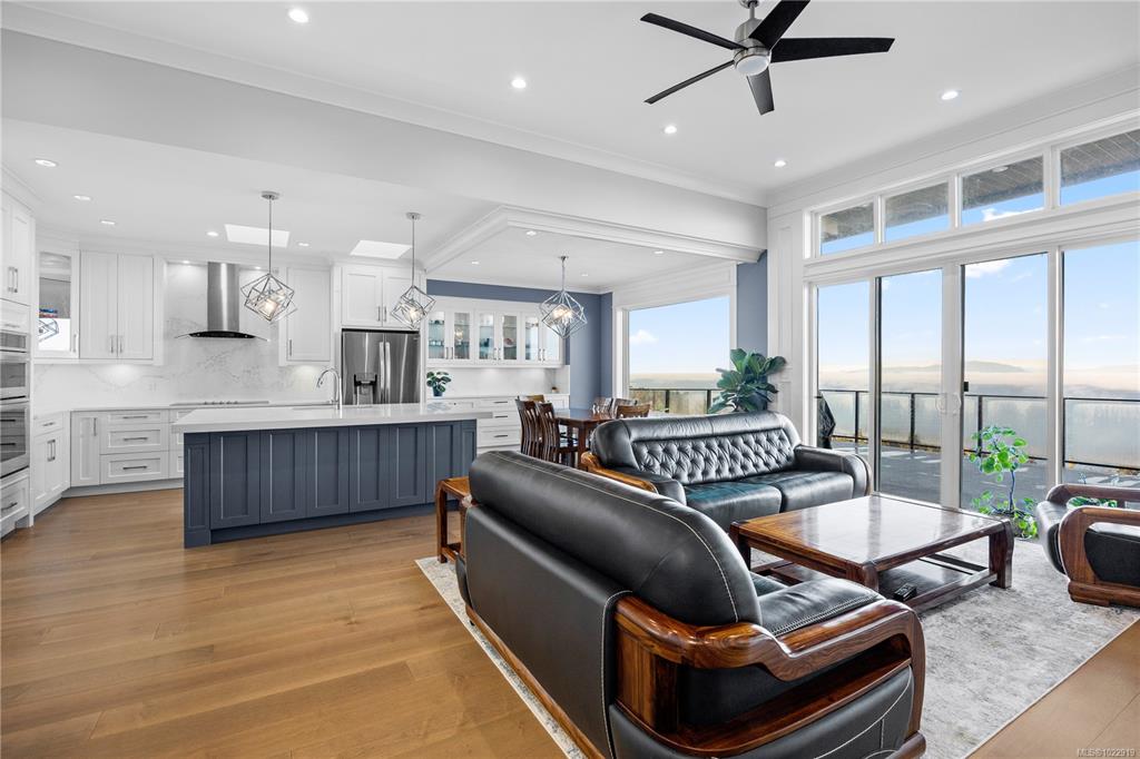 Exceptional residence in prestigious community of North Nanaimo, set on rare 13,000+ sq ft lot w/ breathtaking views of Georgia Strait & snow-capped mountains from all three levels. This home offers over 5,200 sqft of living space w/ 7–8 bedrooms & 8 bathrooms, including 5 ensuites, ideal for big families.Main level features soaring ceilings up to 11 ft, complemented by 9 ft ceilings on upper and lower floors. Chef-inspired kitchen showcases quartz countertops, backsplash, quality appliances, and seamless f...