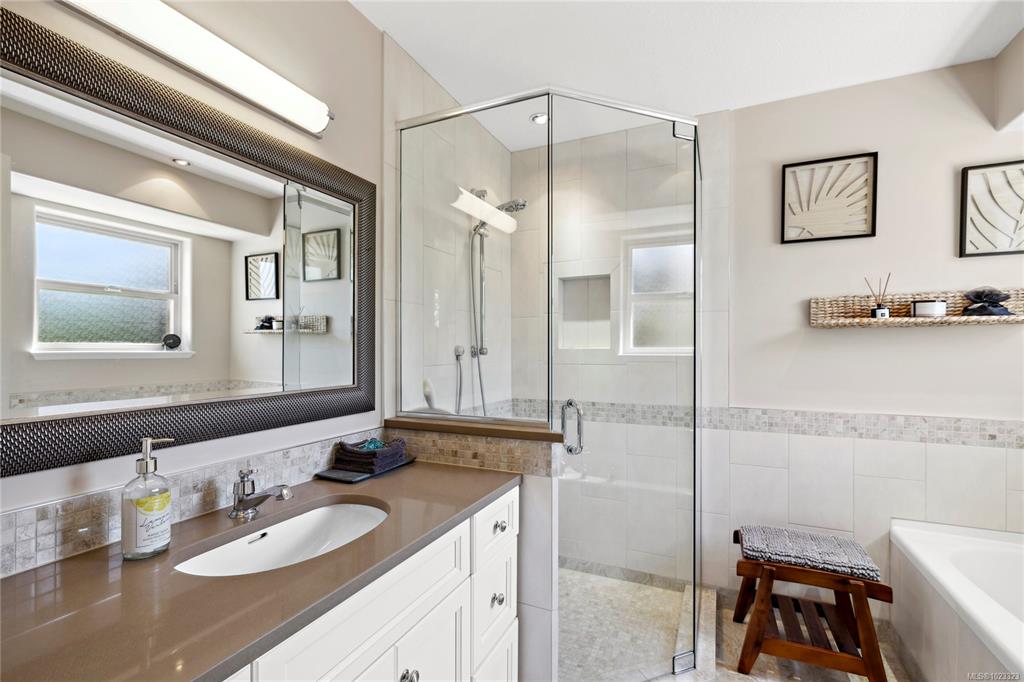 Immaculate 3-bed+den, 3-bath North Nanaimo home backing onto the tranquil Westhaven Park. Thoughtfully renovated with flexibility in mind, the layout features two primary bedrooms—each with its own ensuite—one located on the main level and one upstairs, making it ideal for families, guests, or those seeking main-level living. With 9-foot ceilings and hardwood floors throughout, the home is full of character and charm, while also offering modern updates and a heat pump to ensure year-round comfort. Mature la...