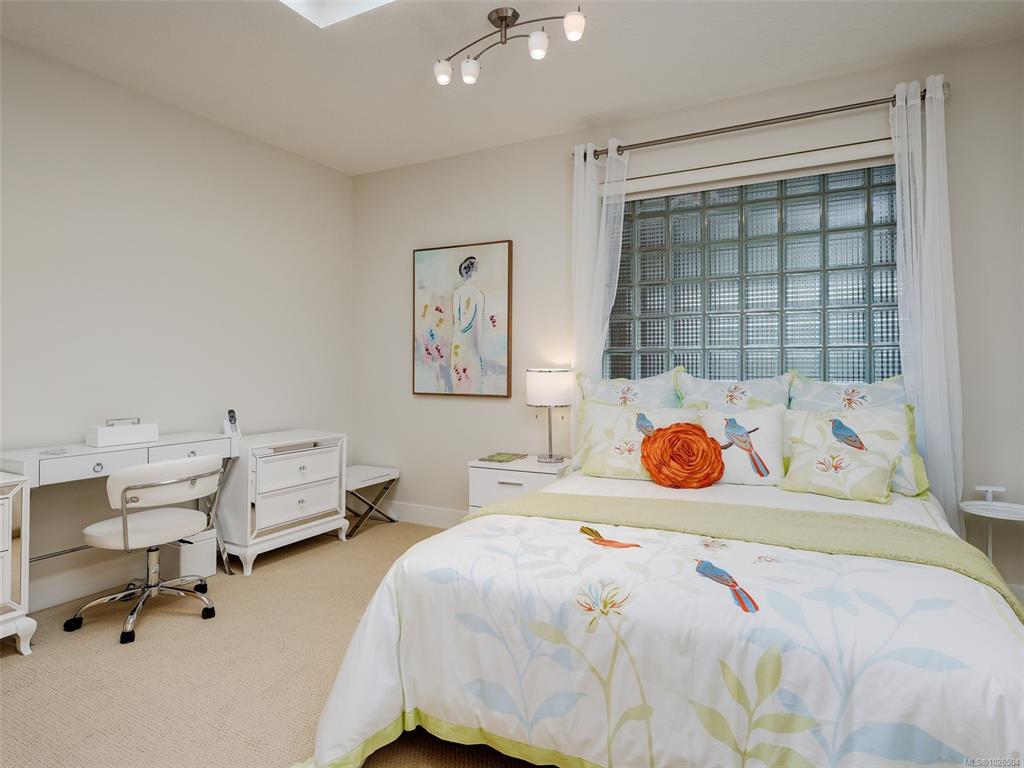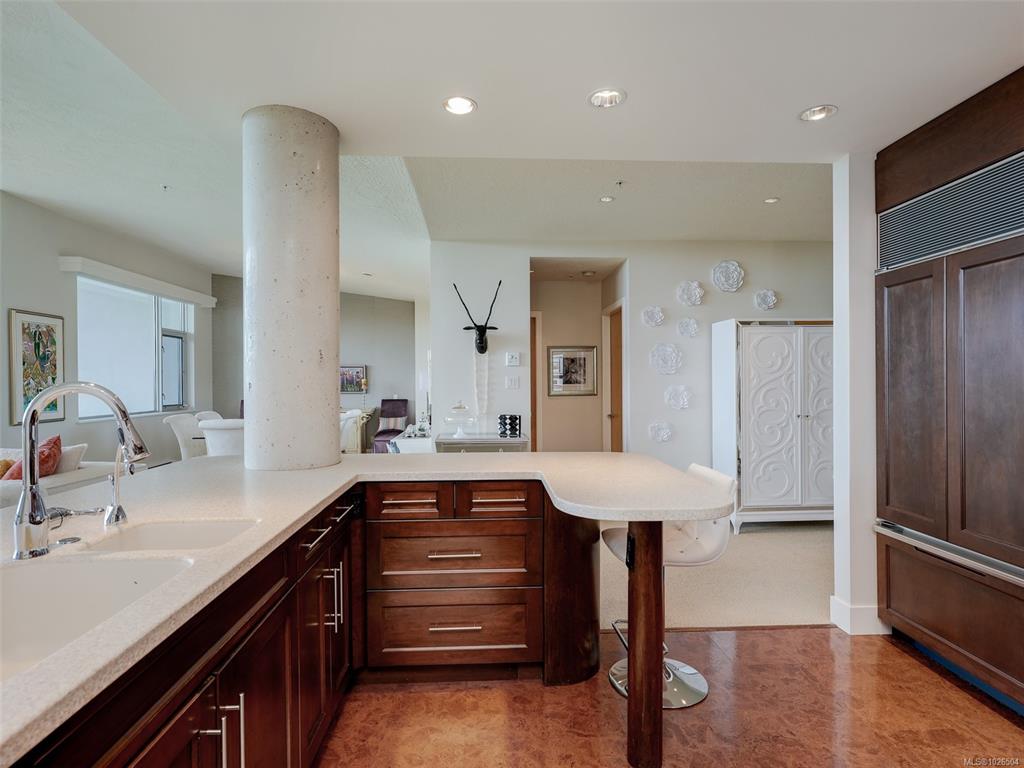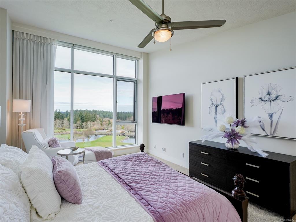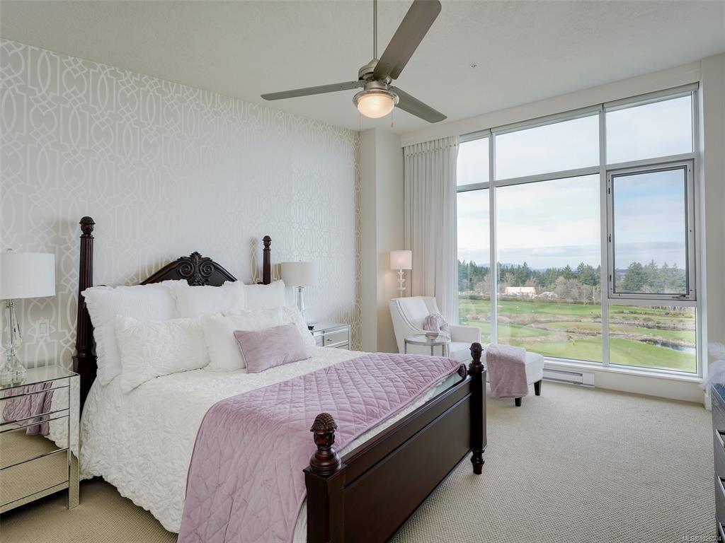 Perched high above Cordova Bay, this refined penthouse showcases sweeping panoramic views over Cordova Bay Golf Course, the Gulf Islands and the Salish Sea. Soaring vaulted ceilings, skylights and floor-to-ceiling windows fill the home with natural light, creating an airy living experience. The elegant living room with gas fireplace flows into a beautifully appointed kitchen with corian countertops, cherry cabinetry, cork flooring and stainless steel appliances—and opens onto a private balcony to enjoy brea...