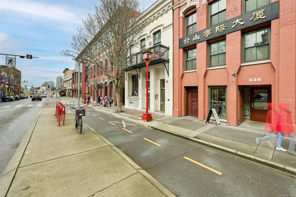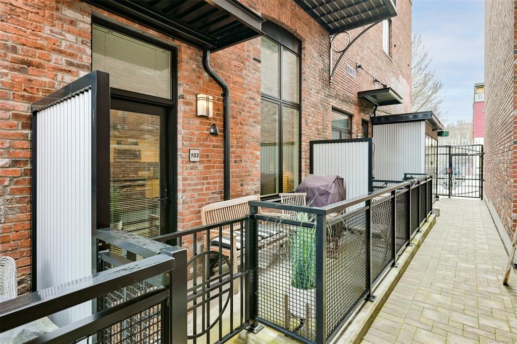 Welcome to the Lum Sam & Lee Chong Building, an architecturally significant conversion of the original 1884 structure, beautifully remastered by Le Fevre & Company in 2017. Tucked within a quiet brick and cobblestone walkway between Chinatown and historic Pandora Avenue, this unique ground-level home offers a blend of heritage charm and modern convenience. Step inside to soaring ceilings, exposed brick walls, and a thoughtfully designed open floorplan. The loft-style bedroom overlooks the main living area, ...