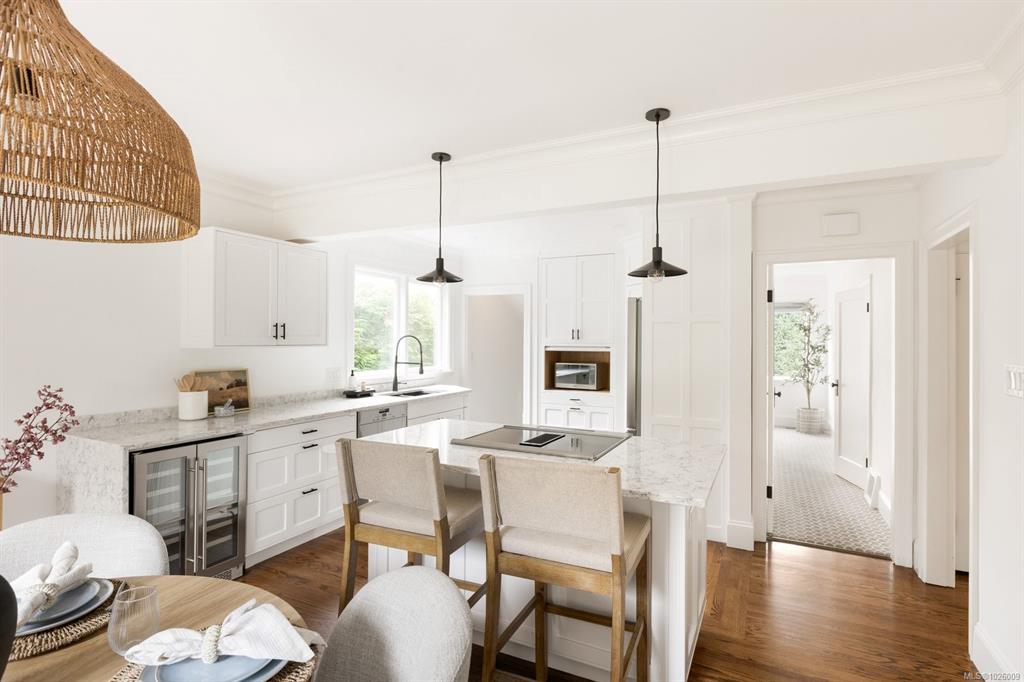 Tucked away on one of the most desirable streets in South Oak Bay, this beautifully updated residence offers nearly 3,000 sq ft of flexible living space on a private, sun-filled lot. The main level features bright living and dining areas that open seamlessly to expansive patios and established gardens, an updated kitchen designed for both everyday living and entertaining, and a primary bedroom on the main floor, complemented by a second bedroom and office/den. The lower level adds exceptional versatility wi...