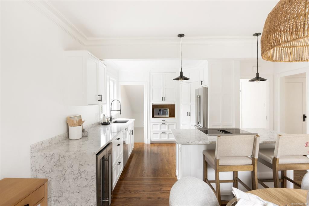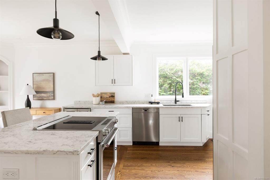 Tucked away on one of the most desirable streets in South Oak Bay, this beautifully updated residence offers nearly 3,000 sq ft of flexible living space on a private, sun-filled lot. The main level features bright living and dining areas that open seamlessly to expansive patios and established gardens, an updated kitchen designed for both everyday living and entertaining, and a primary bedroom on the main floor, complemented by a second bedroom and office/den. The lower level adds exceptional versatility wi...