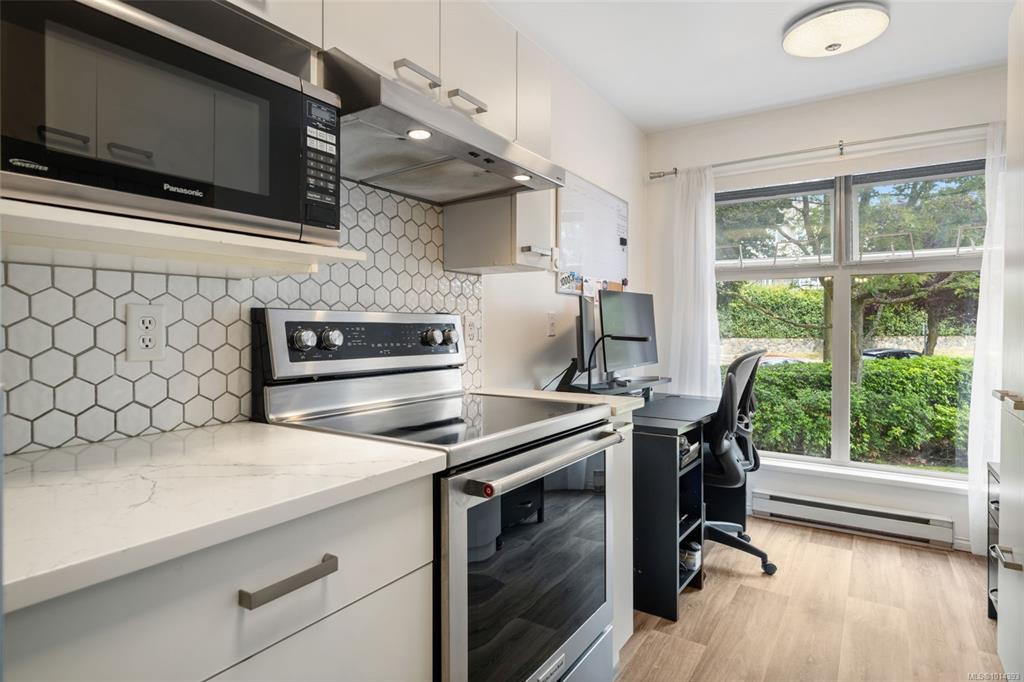 Step into the Victoria market with #203–535 Manchester Rd! This bright and updated 1 bed, 1 bath condo offers over 800 sq ft of well-designed living space with fresh paint, new carpet, and a modern kitchen featuring quartz counters, stainless steel appliances, stylish backsplash, and updated lighting. The spacious bedroom includes a walk-in closet, while the inviting living room with its cozy gas fireplace adds warmth and charm. Relax on your private northwest-facing patio with a peaceful outlook onto green...