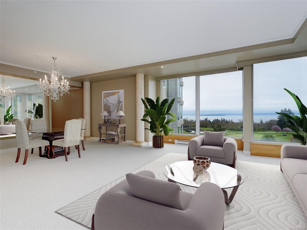 Enjoy sweeping views over Ridge Golf Course to the Gulf Islands, the Strait of Juan de Fuca and Mount Baker from this bright 2 bed, 2 bath corner suite in prestigious Sayward Hill. Floor-to-ceiling windows capture the stunning outlook and fill the home with natural light, while the spacious, flexible floor plan offers a media/family room and a striking three-sided gas fireplace. The generous primary bedroom features a walk-in closet and private ensuite. Additional highlights include in-suite laundry, abunda...