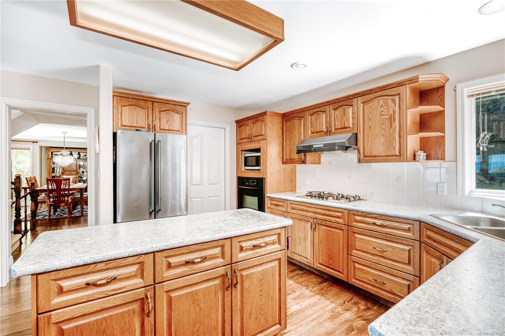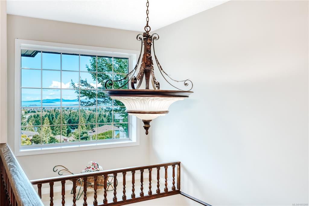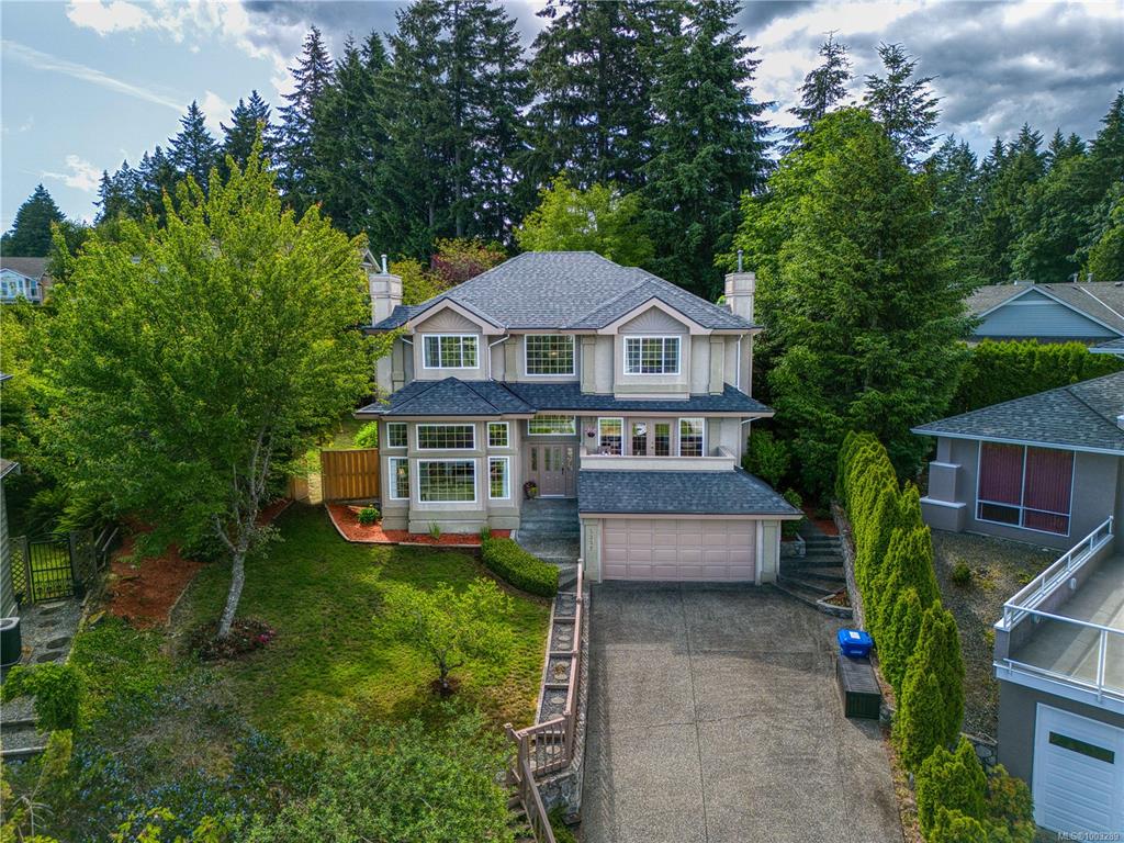 This custom-built, multi-level home is perfectly designed for a large family, set on a private, oversized lot with breathtaking views—no power lines or rooftops in sight! The interior showcases a graceful turned staircase, gleaming hardwood floors, and a bright, open kitchen/family room at the heart of the home. The sunny breakfast nook feels like a cozy retreat in Butchart Gardens. Offering 6 bedrooms including a luxurious primary suite with ensuite, 4 bathrooms, a soaring vaulted-ceiling living room, a pr...