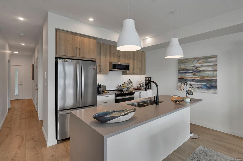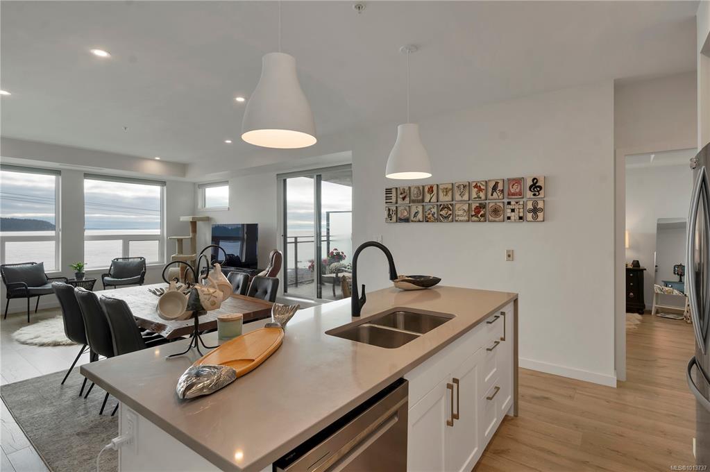This Omnia unit blends comfort and style with ocean and nature views. The spacious primary bedroom offers a walk-in closet and spa-inspired ensuite with double vanity and a herringbone-tiled shower. A second bedroom overlooks peaceful green space, paired with a full bath and relaxing tub—ideal for family or guests. A bright den makes a perfect office, reading nook, or creative space. Everyday conveniences include in-unit laundry, undercover parking, and a pet- and rental-friendly building. Stay comforta...