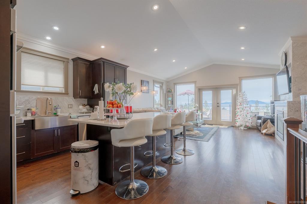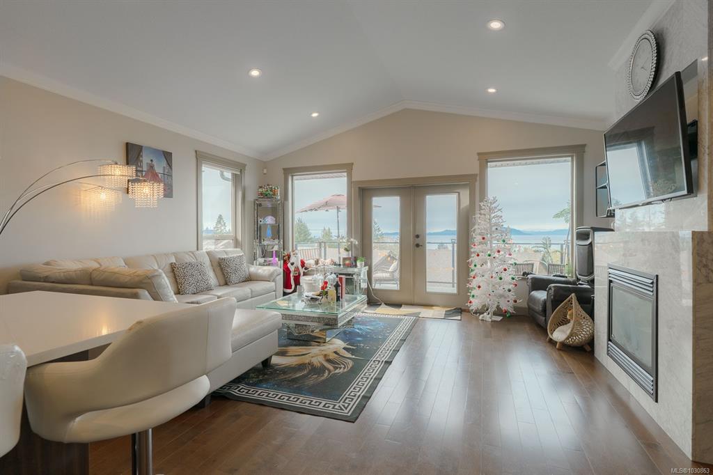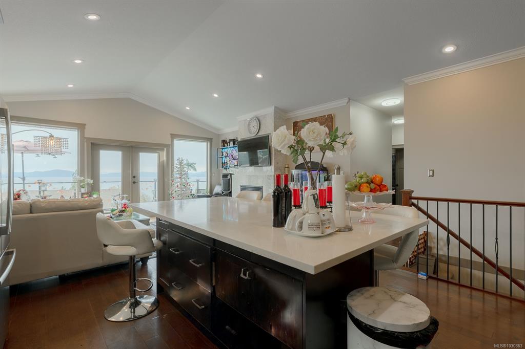 Discover coastal lifestyle in this 5-bed, 3-bath home in North Nanaimo’s Oceanview Terrace. This main-level entry home features an open-concept layout centered around a gourmet kitchen with granite countertops, a marble backsplash, and a cozy gas fireplace. Step onto the large balcony to soak in panoramic views of the Georgia Strait and Winchelsea Islands. The primary suite is a true retreat, offering soaring ocean views to start your day. For added value, the home includes a 2-bedroom legal suite, perfect ...
