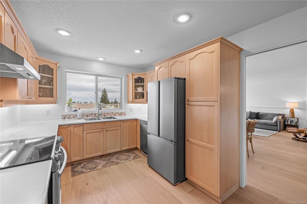 Perched at the top of a quiet cul-de-sac & oriented perfectly toward the water, this home captures sweeping views over the Georgia Strait, with ever-changing ocean & mountain vistas. The main level offers 3 bedrooms, including a spacious primary suite with walk-in closet & 4-pc ensuite & laundry rough-ins. At the front of the home, a formal living room with a gas fireplace & adjoining dining area open onto the deck. The kitchen features generous counter space, ample cabinetry & a brand-new appliance package...