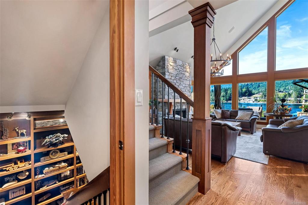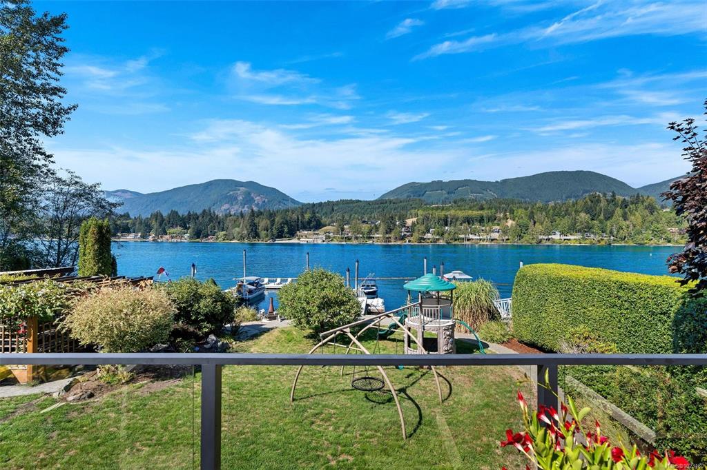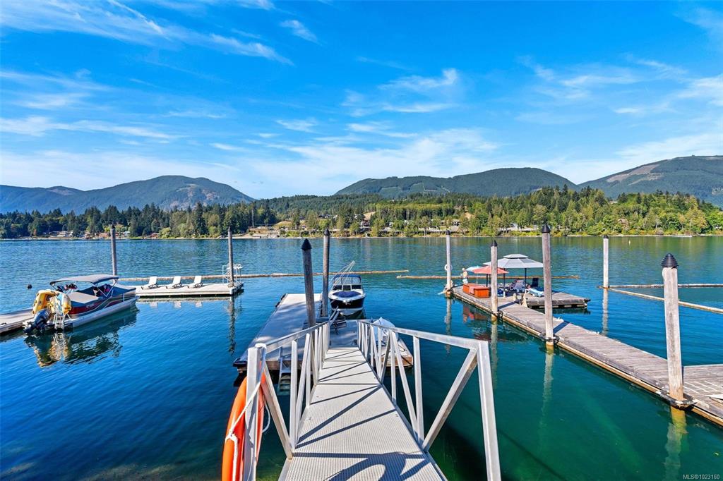 Welcome to a rare opportunity to own an extraordinary waterfront home on Cowichan Lake. Nestled on Point Ideal Drive—an exclusive enclave of only nine properties—this custom-built 2005 residence offers 3,241 sq. ft. of timeless West Coast design on an 8,815 sq. ft. lot with private dock. Inside, soaring 19’ ceilings, a dramatic stone fireplace, oak floors, and expansive windows frame breathtaking lake and mountain views. The gourmet kitchen features maple shaker cabinetry, granite counters, walk-through pan...