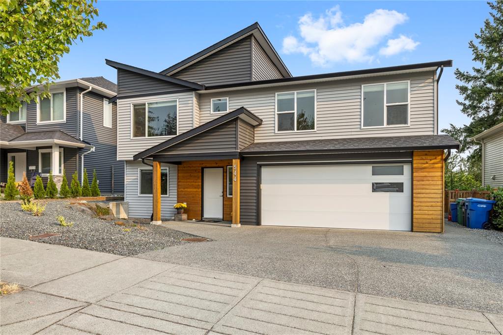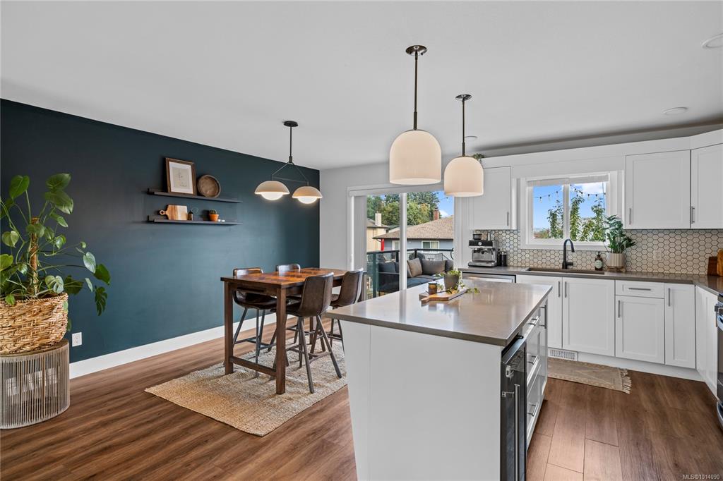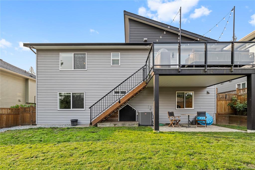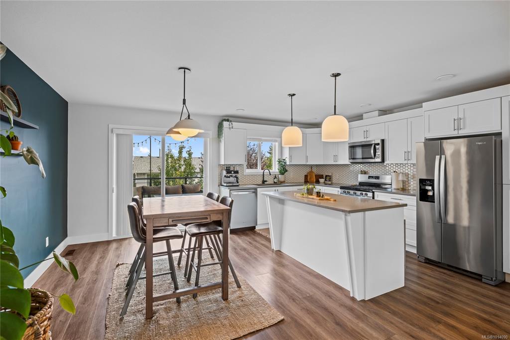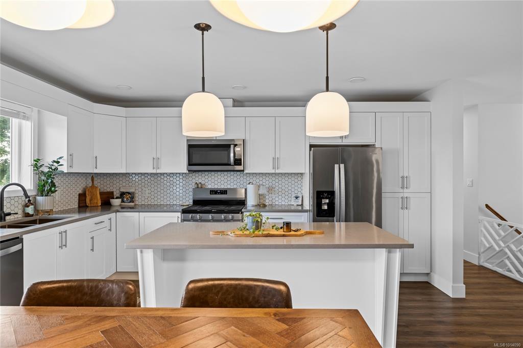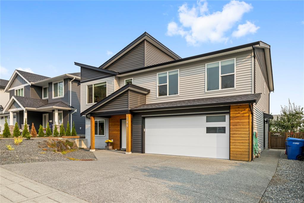 Located on a desirable cul-de-sac, this newer home offers an open concept main level with Westcoast-style vaulted ceilings. The kitchen features four stainless appliances, abundant white cabinetry, a stylish backsplash, and an island with eating bar. A gas fireplace warms the living room, while the dining area provides access to a deck with stairs leading to the backyard. The main level includes three bedrooms, with the spacious primary offering a walk-in closet and three-piece ensuite. Downstairs, you’ll f...