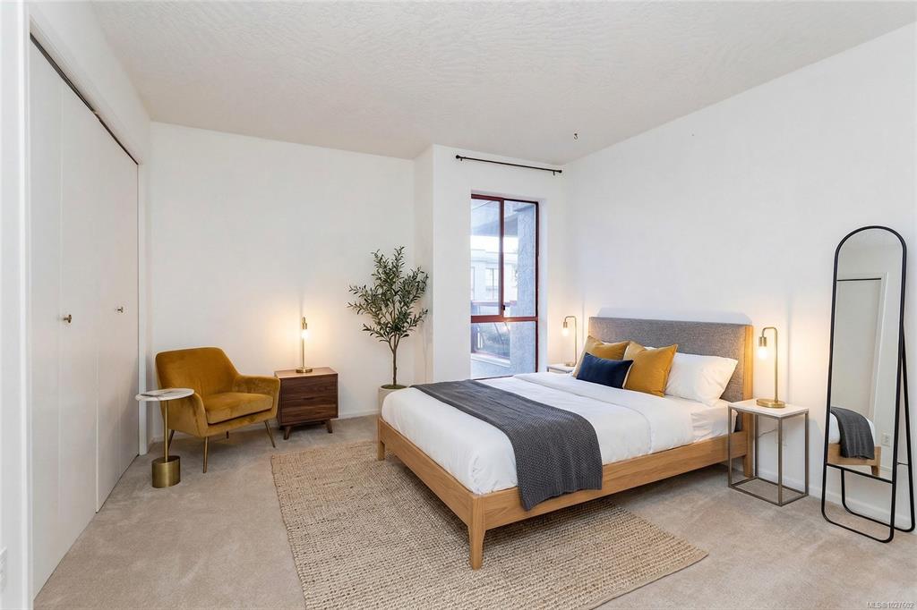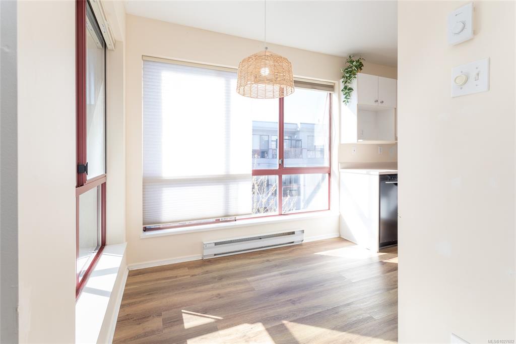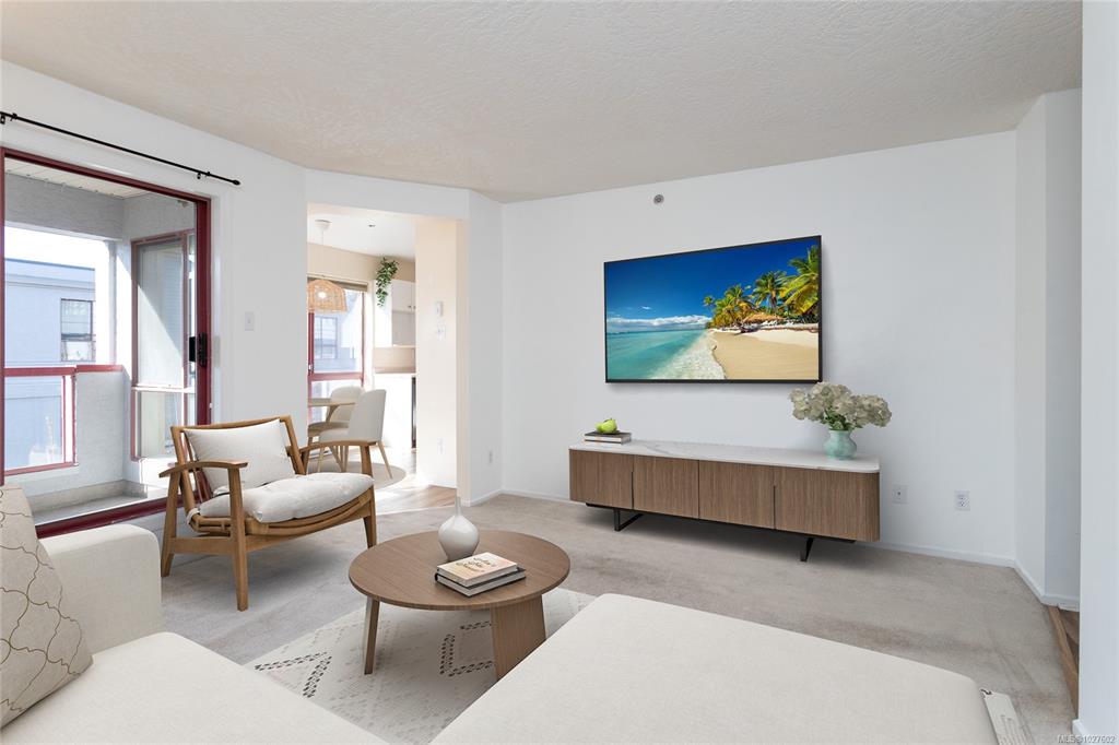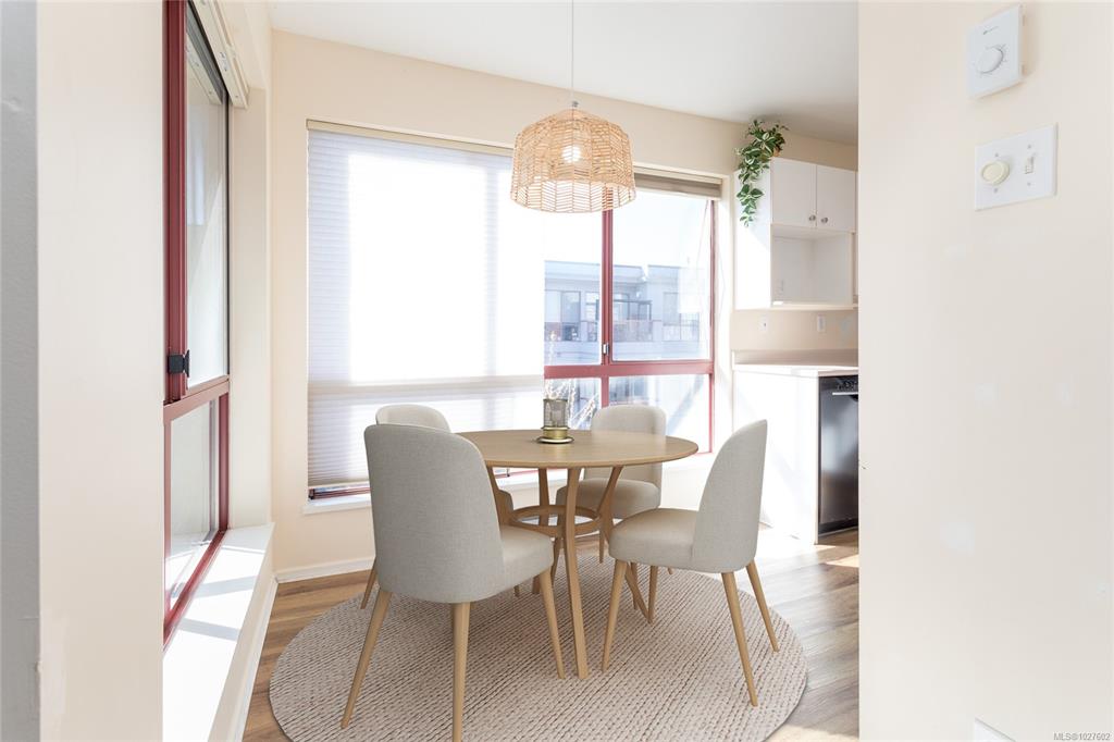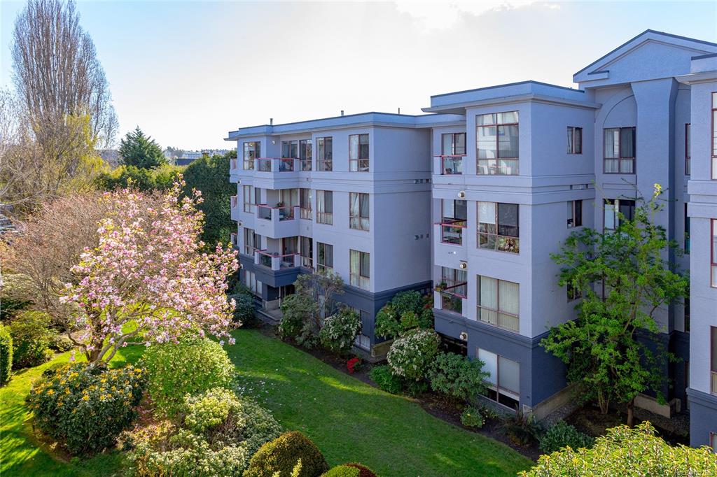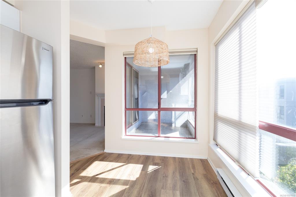 Fantastic central location close to Mayfair mall, & minutes to downtown Victoria, this south-facing 1-bed/1-bath plus den condo sits 3 floors up overlooking the lush gardens of the property. This unit has large windows that provide an abundance of natural light, creating a warm, inviting space. Kitchen features newer appliances, and plenty of cupboard space with an eat-in sunny breakfast nook overlooking the covered deck. This practical layout offers a large primary bedroom with good sized closet, and linen...