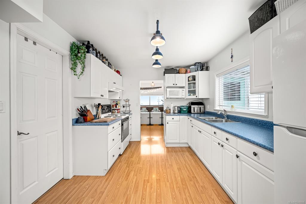 Set on the ocean side of the popular Thulin Street in a highly desirable central Campbell River location, this appealing home enjoys beautiful ocean views and a versatile layout suited to a variety of buyers. The upper floor features one bedroom with access to a private front deck, a bright kitchen and dining area, office space, and a welcoming family room with access to the back deck. The lower level adds excellent functionality with an additional bathroom for the main home, storage area, and access to the...