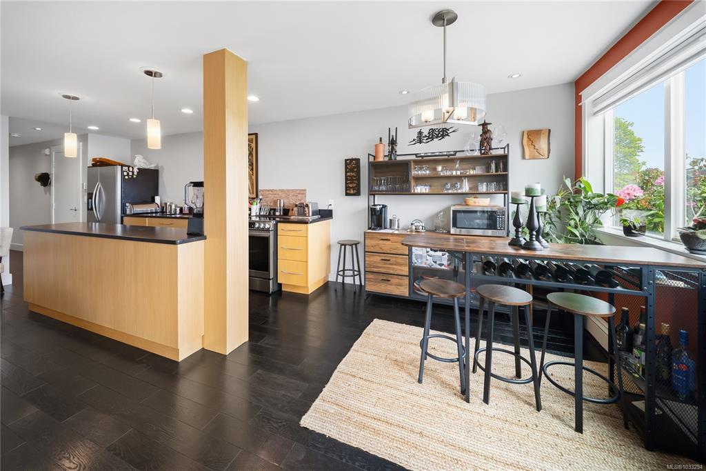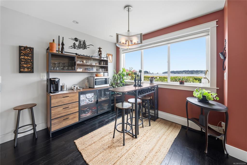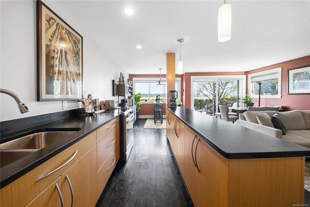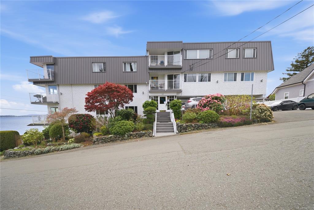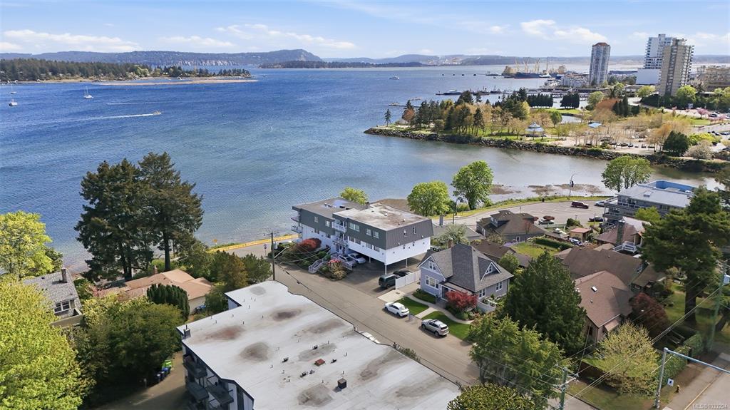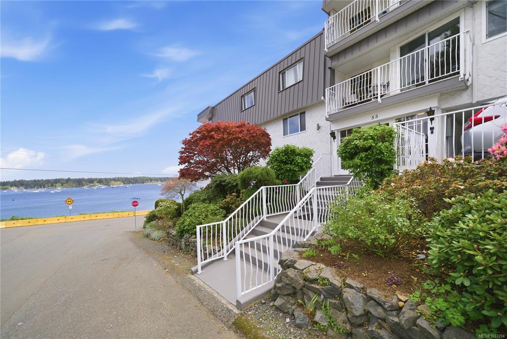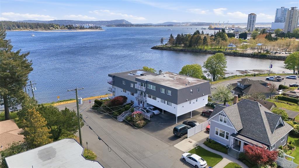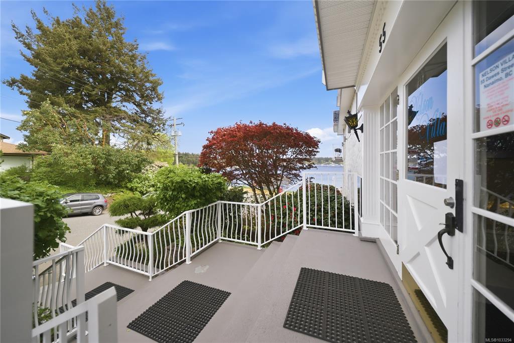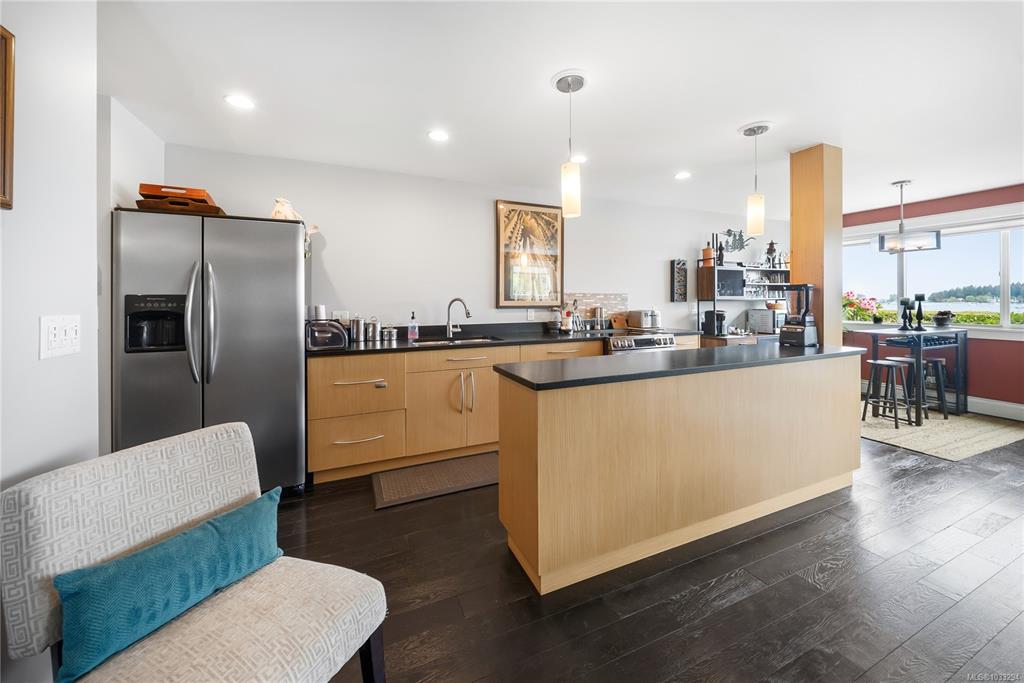 Unobstructed Oceanfront Views at an affordable price! Perfectly positioned above the seawall and just a short walk to downtown Nanaimo, this professionally renovated 1 bedroom plus den residence offers panoramic, unobstructed views of the ocean, islands, and coastal mountains. The bright, open-concept layout features an updated kitchen with stone counters, Euro-style cabinetry, modern appliances, and seamless flow to the dining and living areas. Hardwood floors, travertine tile, and quality finishes are evi...