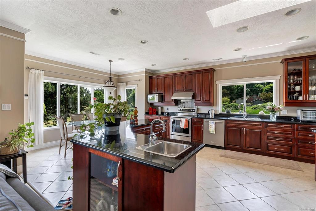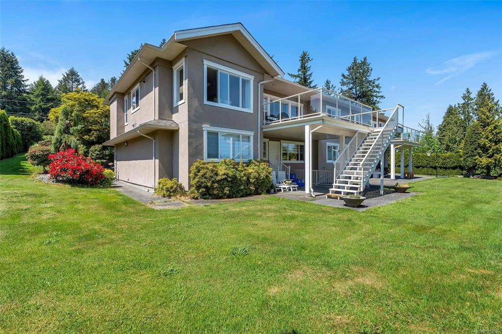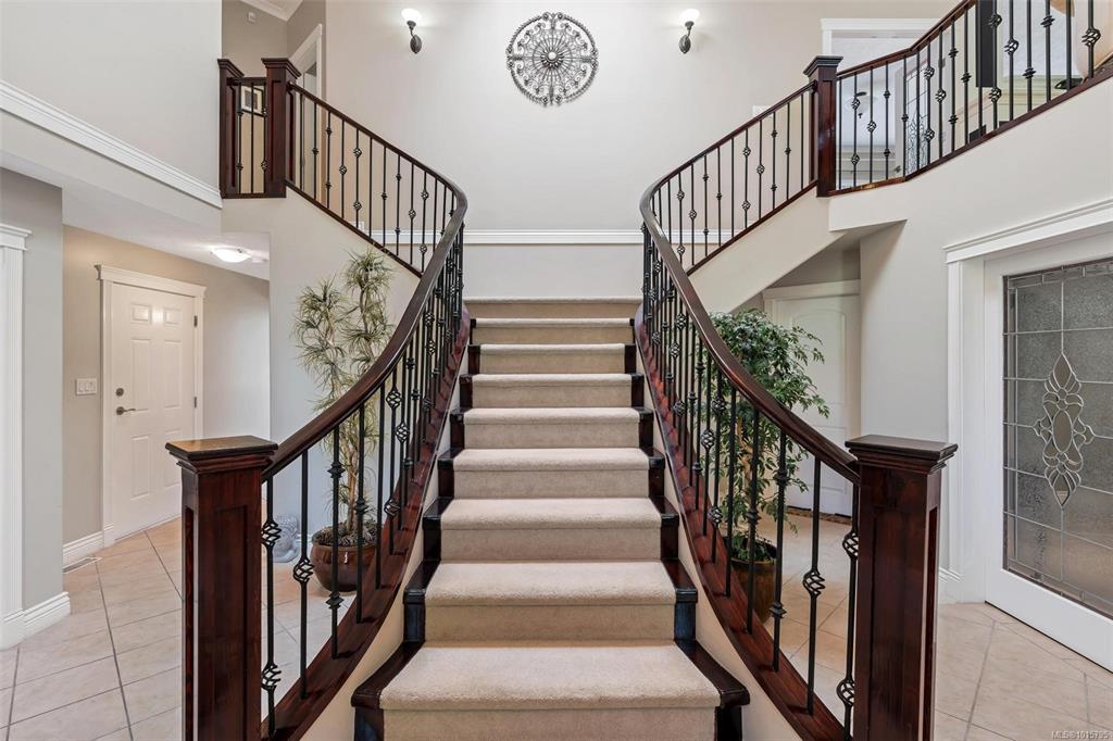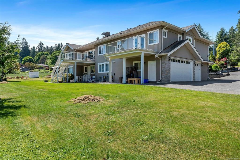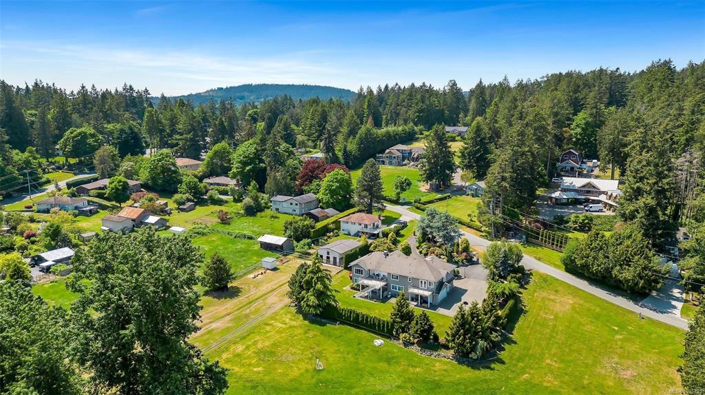 CORDOVA BAY ACREAGE! This custom 4,792 sq/ft home sits on a private 1.89-acre property surrounded by estate homes, hobby farms, and equestrian properties. The level lot (approx. 300ft x 300ft) features a circular driveway and grand estate-style entry, set well back from the road for exceptional privacy. The spacious two-level layout offers 7 bedrooms and 5 bathrooms, including a self-contained 2-bedroom suite—ideal for extended family or rental income. Inside, a dramatic open staircase and vaulted ceilings ...