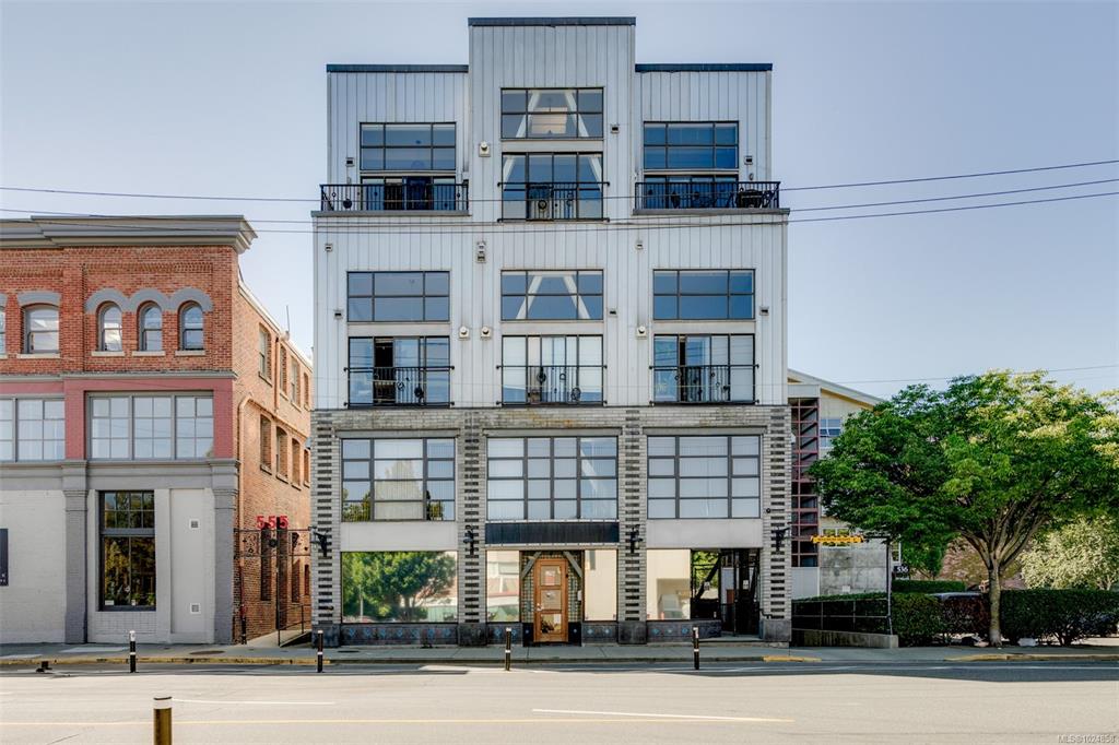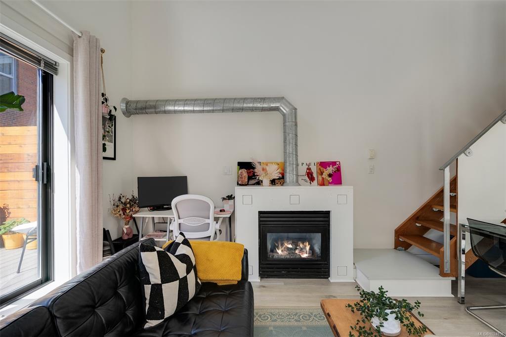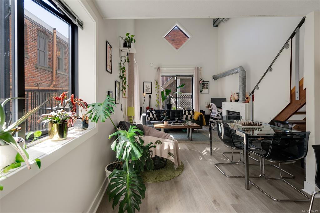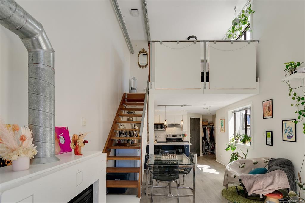 Stylish and unique, this two-level loft at Chatham Studio Lofts offers downtown living at its finest. Featuring soaring 16-foot ceilings, TWO balconies, and a bright corner layout with south-facing exposure, this unit is filled with natural light and character. The open-concept design includes a gas fireplace, stainless steel appliances, quartz countertops, and a loft bedroom with a large walk-in closet. In-suite laundry, secure underground parking (leased), and a storage locker are all included. There is a...