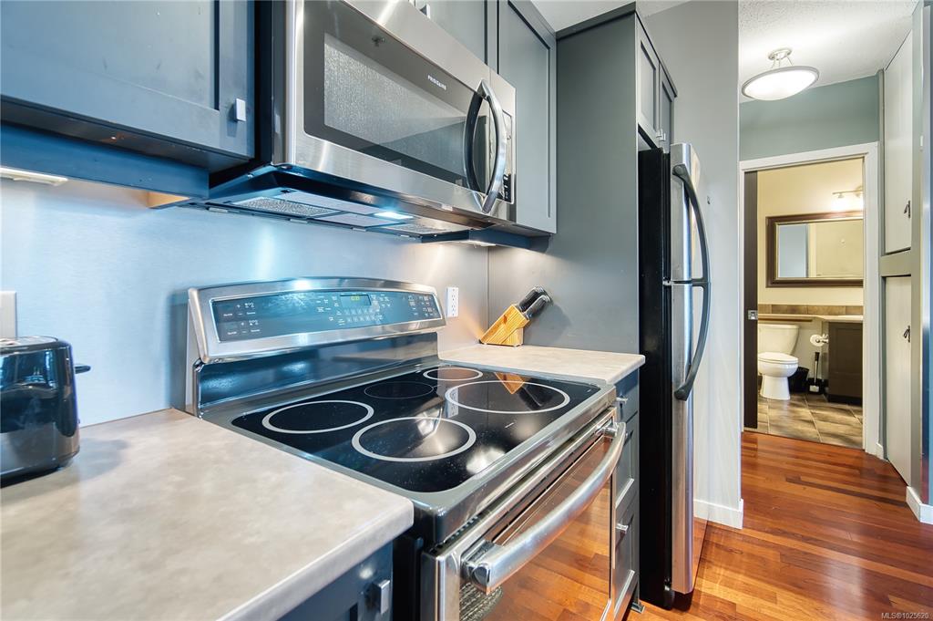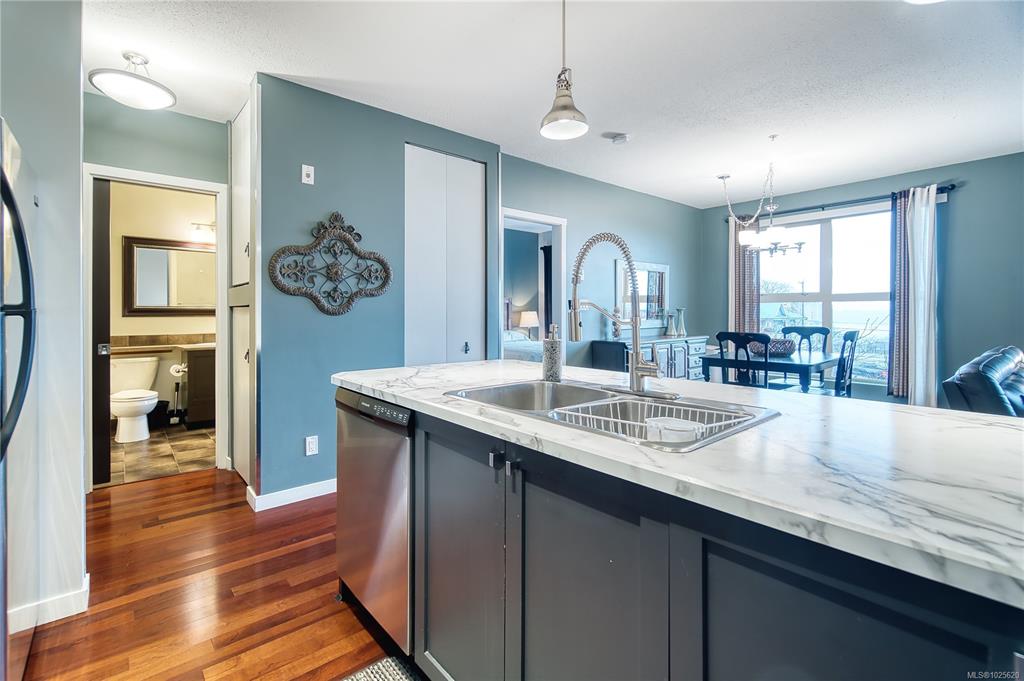 Stunning ocean-view condo in the heart of Nanaimo's charming and walkable Old City Quarter. This exquisite one-bedroom and den residence boasts breathtaking ocean and city views from two spacious balconies, perfect for savouring the city's sights and sounds. The open-concept design is ideal for any lifestyle, with the den adaptable as an office, storage, reading nook or a guest-room. The Vivo building's gated entrance leads to a private, landscaped courtyard oasis, with amenities enhancing your lifestyle in...