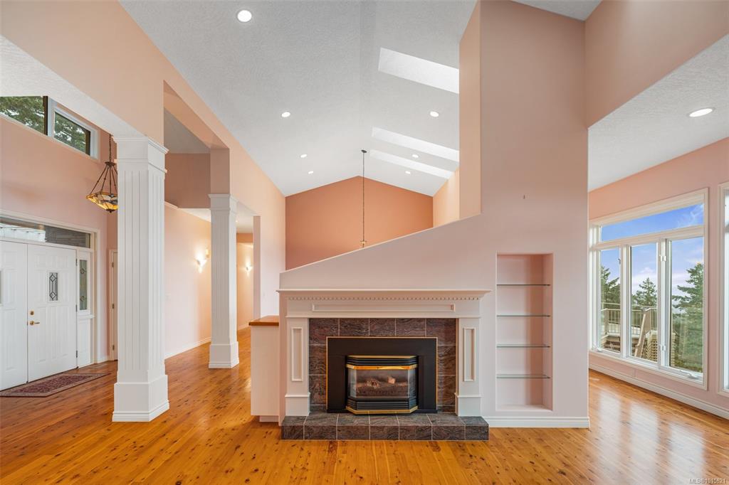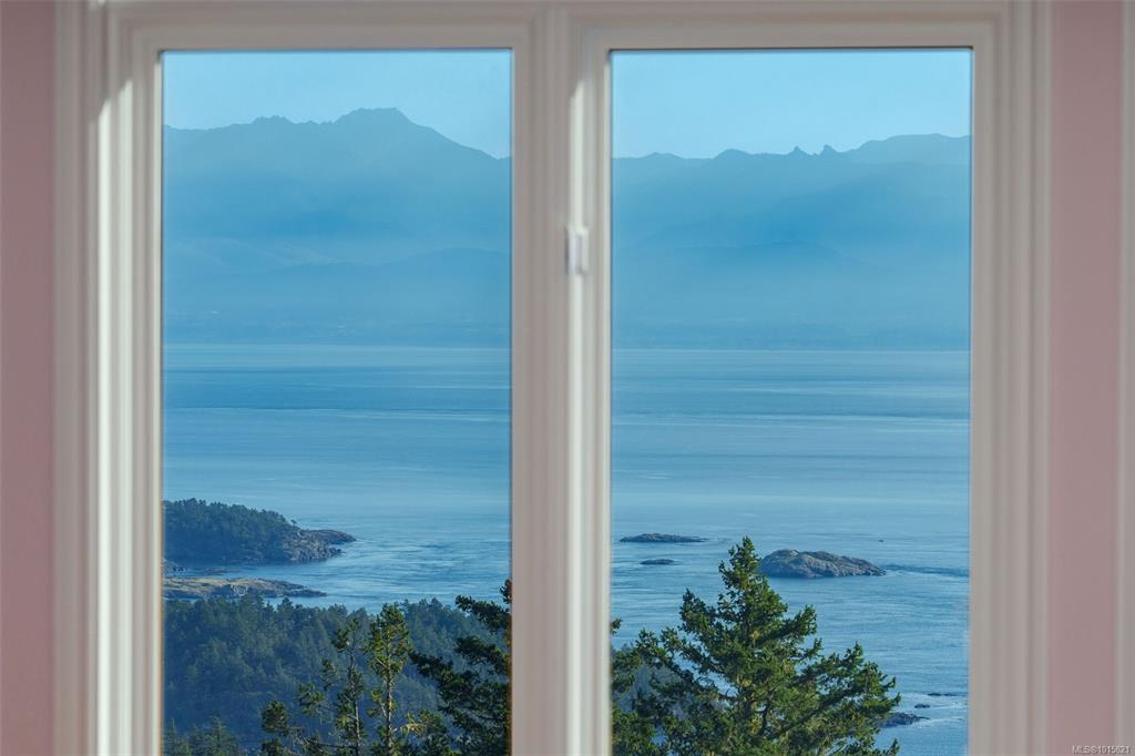 Perched atop Mount Matheson, this custom-built, architecturally designed home offers 5 beds, 4 baths, and breathtaking ocean views. Spanning 5090 sq. ft., it's the perfect blend of family living and entertaining. Step inside and be awestruck by southern vistas encompassing Beecher Bay, the Salish Sea, and the snow-capped Olympic Mountains. The architect's focus on maximizing views is evident in every room, with soaring 17 ft. vaulted ceilings, skylights, and floor-to-ceiling windows creating a light-filled ...