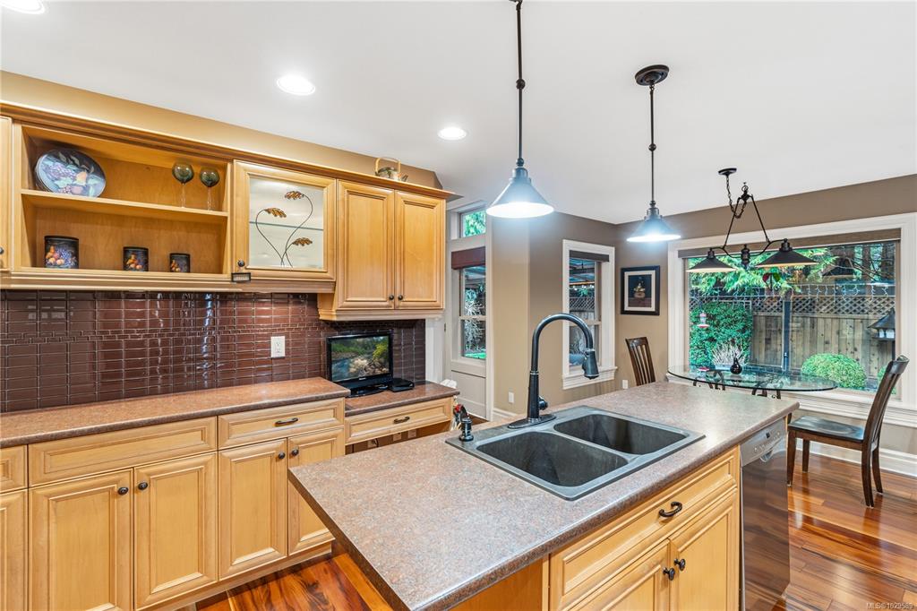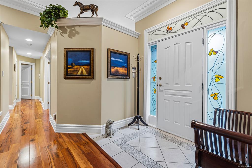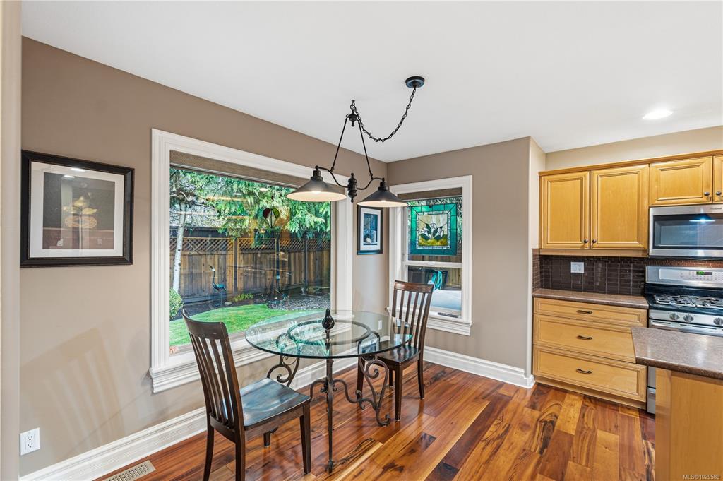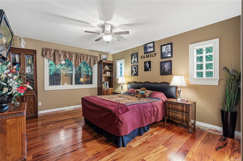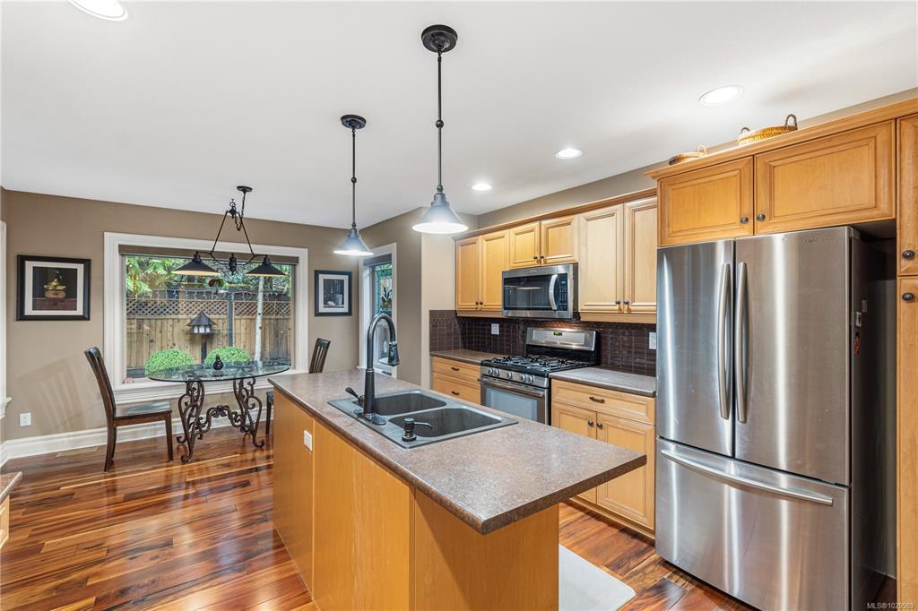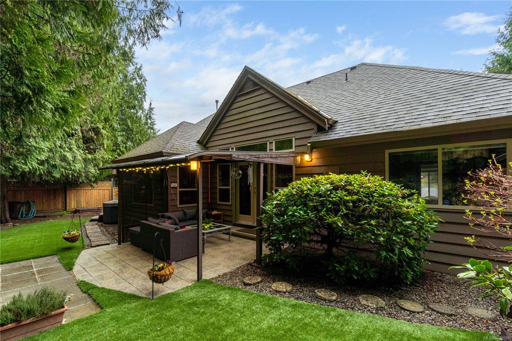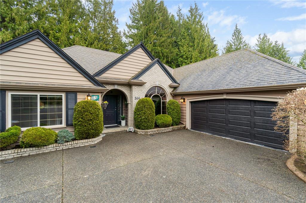Tucked on a quiet cul-de-sac in the desirable Evergreens subdivision, this 1,747 sq. ft. Qualicum Beach rancher offers exceptional value. The bright kitchen features an island, pantry, eating area, under-cabinet lighting, tile backsplash, gas cooktop & SS appliances. Enjoy a separate dining room w/ French doors, stunning hardwood floors throughout, a spacious great room w/ gas fireplace, 10 ft. ceilings, detailed moldings, & access to a covered glass patio. The home offers 2 bedrooms w/ 4-pc ensuite cheater...