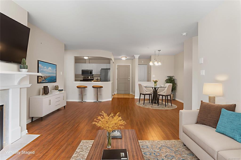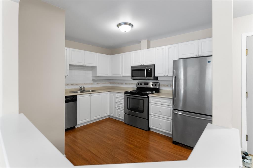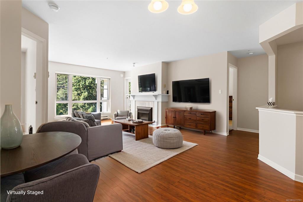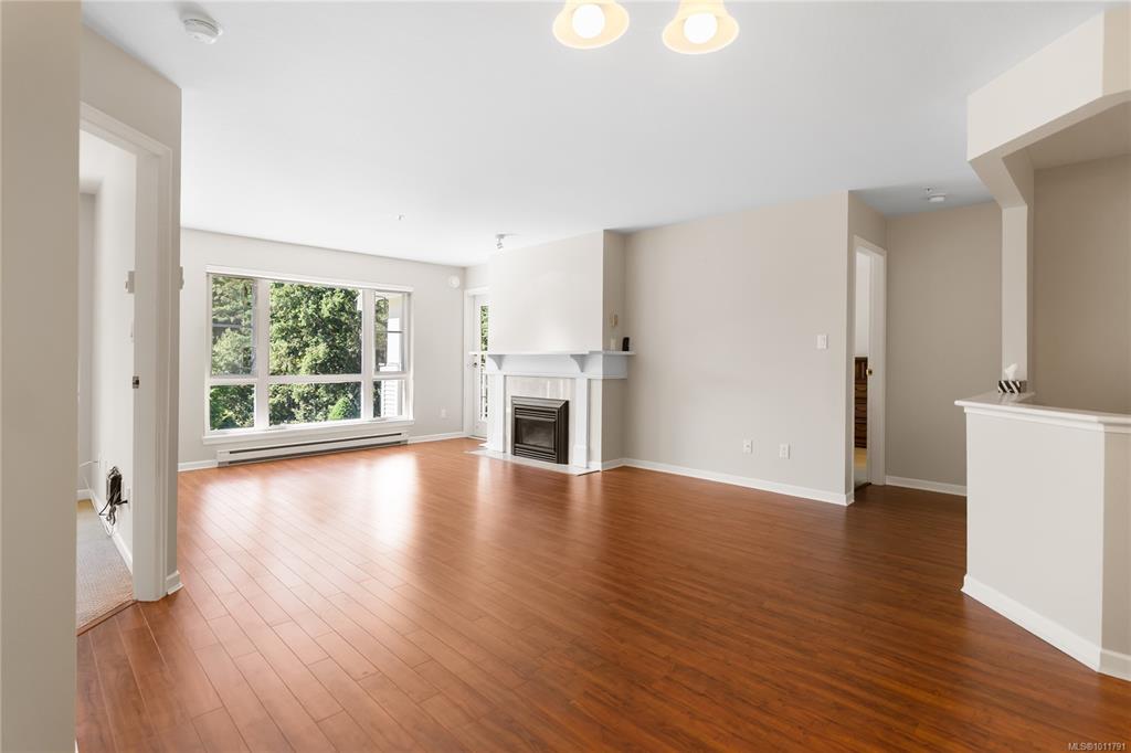 Bright and welcoming, this immaculate top floor 2-bedroom, 2-bathroom condo in North Nanaimo's Longwood community offers privacy, comfort, and stunning garden and forest views. This impressive suite in the Ambleside building has attractive laminate flooring and features a spacious deck for outdoor enjoyment and an open-concept kitchen, dining, and living area highlighted by a newer gas fireplace. The kitchen includes a pantry with well-maintained appliances, while the home also provides secure underground p...