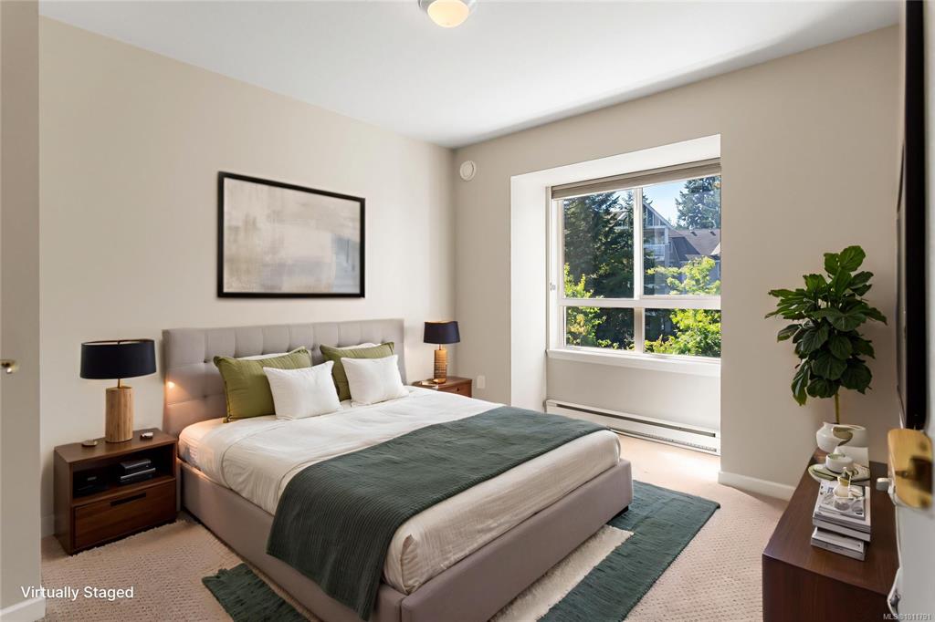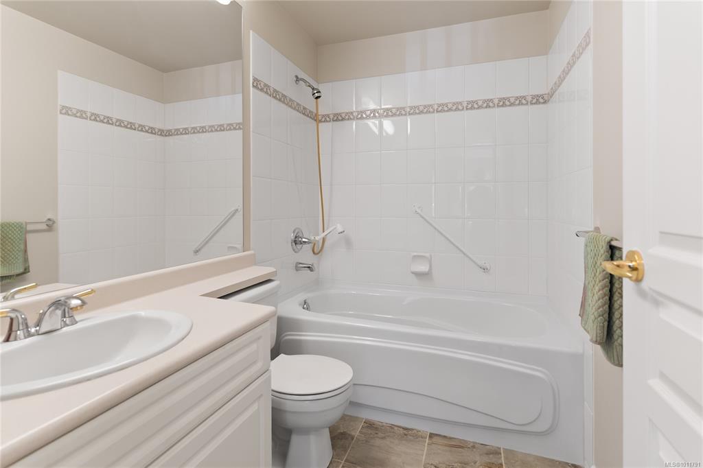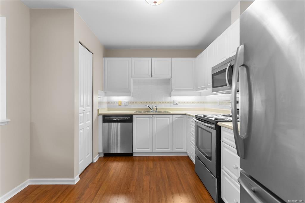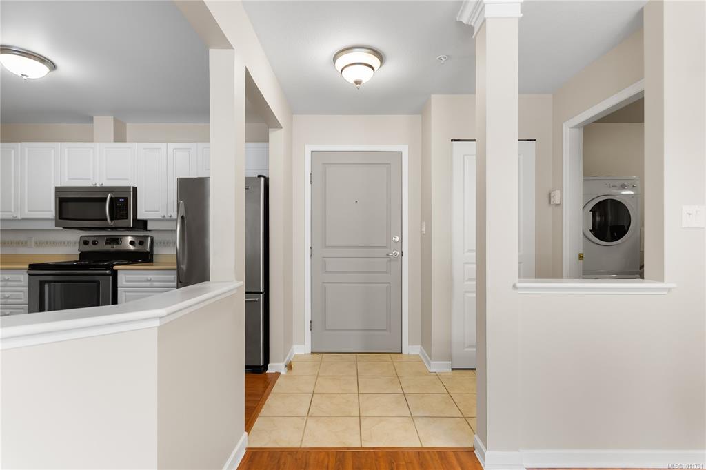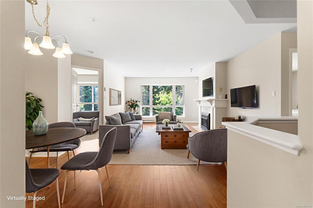 Bright and welcoming, this immaculate top floor 2-bedroom, 2-bathroom condo in North Nanaimo's Longwood community offers privacy, comfort, and stunning garden and forest views. This impressive suite in the Ambleside building has attractive laminate flooring and features a spacious deck for outdoor enjoyment and an open-concept kitchen, dining, and living area highlighted by a newer gas fireplace. The kitchen includes a pantry with well-maintained appliances, while the home also provides secure underground p...