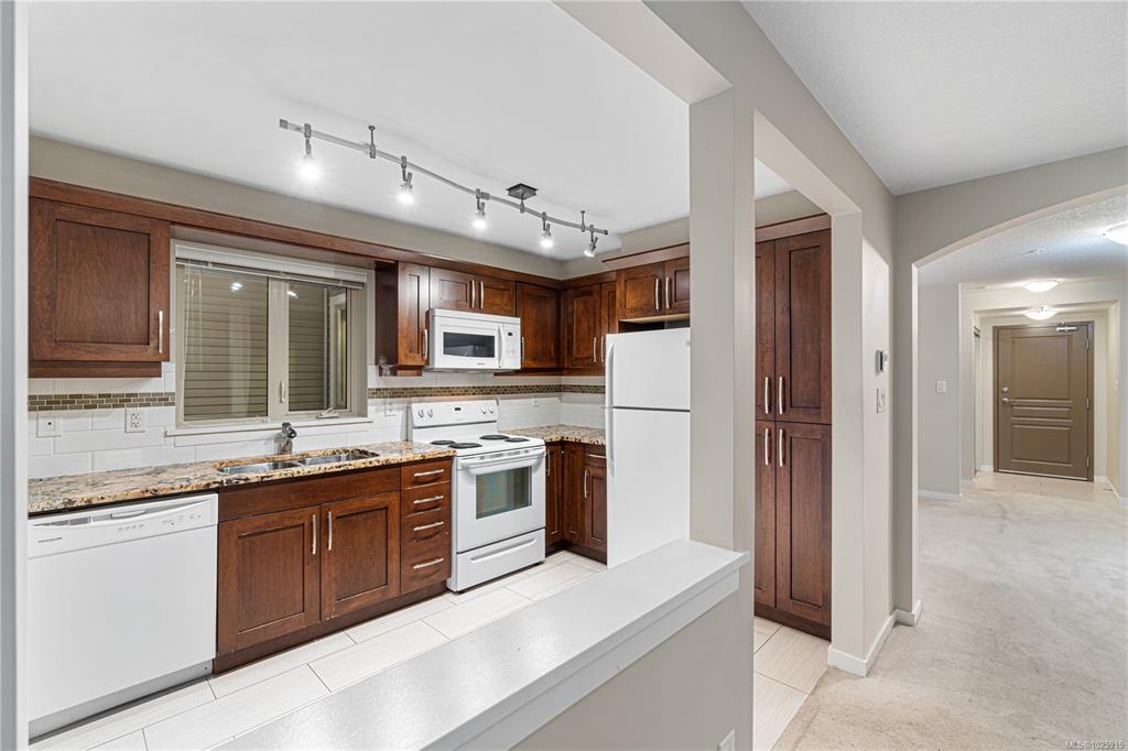 Imagine a lifestyle where everyday conveniences are just a pleasant walk away + the car can stay parked. This tastefully appointed two-bedroom, two-bath condo in the sought-after Thornbridge building is nestled within North Nanaimo’s premier condo development - Longwood, near Oliver Woods Community Center + North Town Shopping Center. The thoughtfully designed open floor plan is both inviting and highly functional, offering comfortable living spaces filled with natural ease. The kitchen is beautifully laid ...