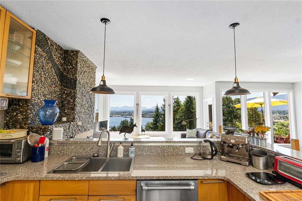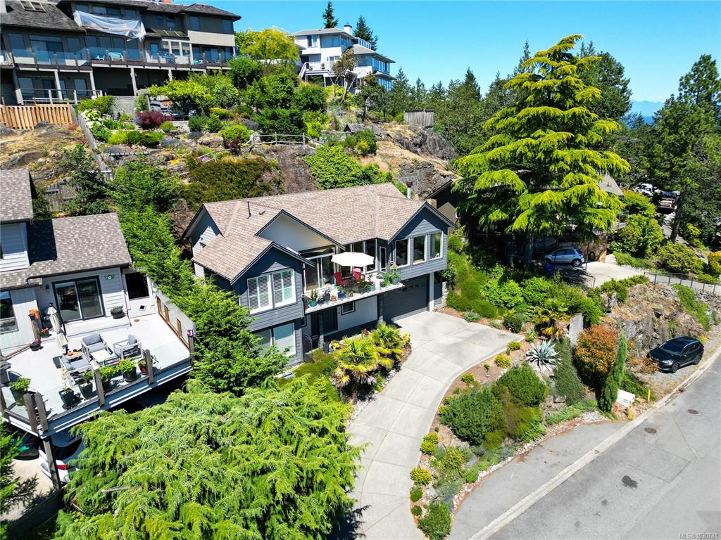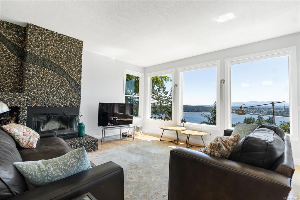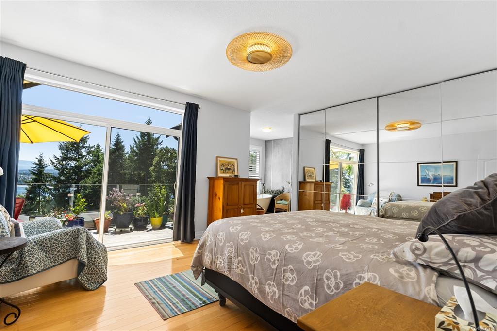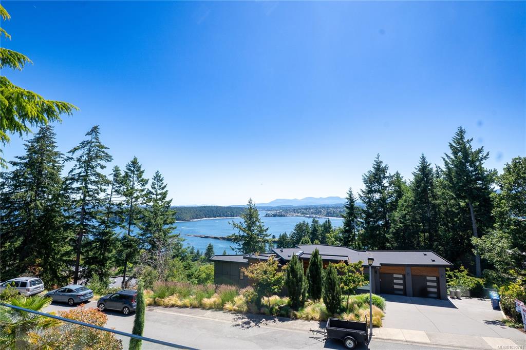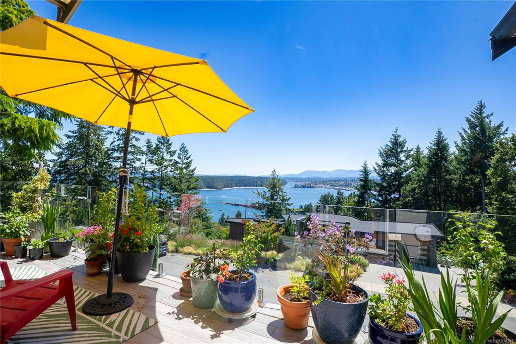 STUNNING OCEAN & MOUNTAIN VIEWS! This immaculate executive residence overlooks Departure Bay & features panoramic vistas and natural light. The gourmet kitchen offers oak cabinetry, granite counters, and a functional layout, while the elegant dining room with skylights opens to a rear patio. A cozy wood-burning fireplace and access to a south-facing deck highlight the living room. The spacious primary suite has a luxurious 5-pce ensuite & generous wardrobe. A 2nd bedroom with private patio and modern main b...