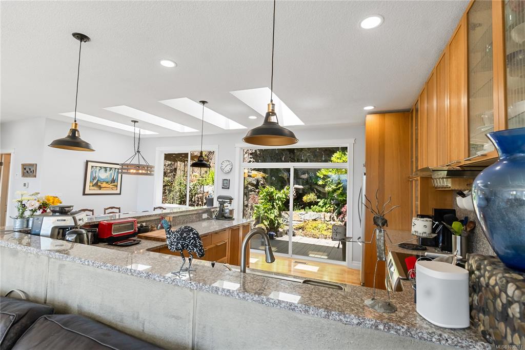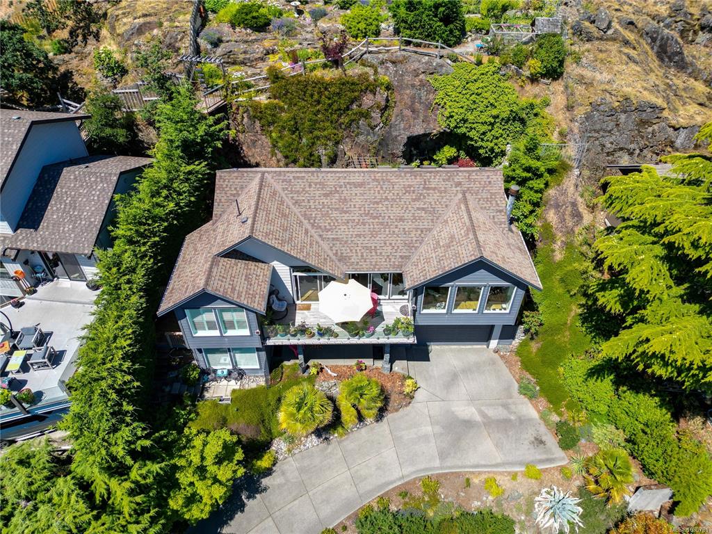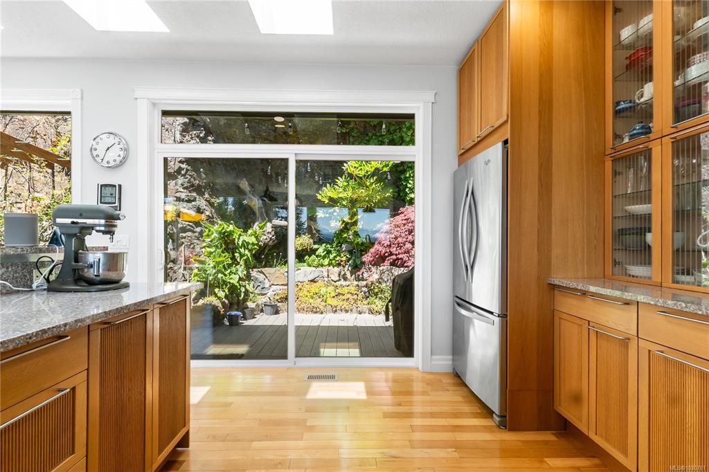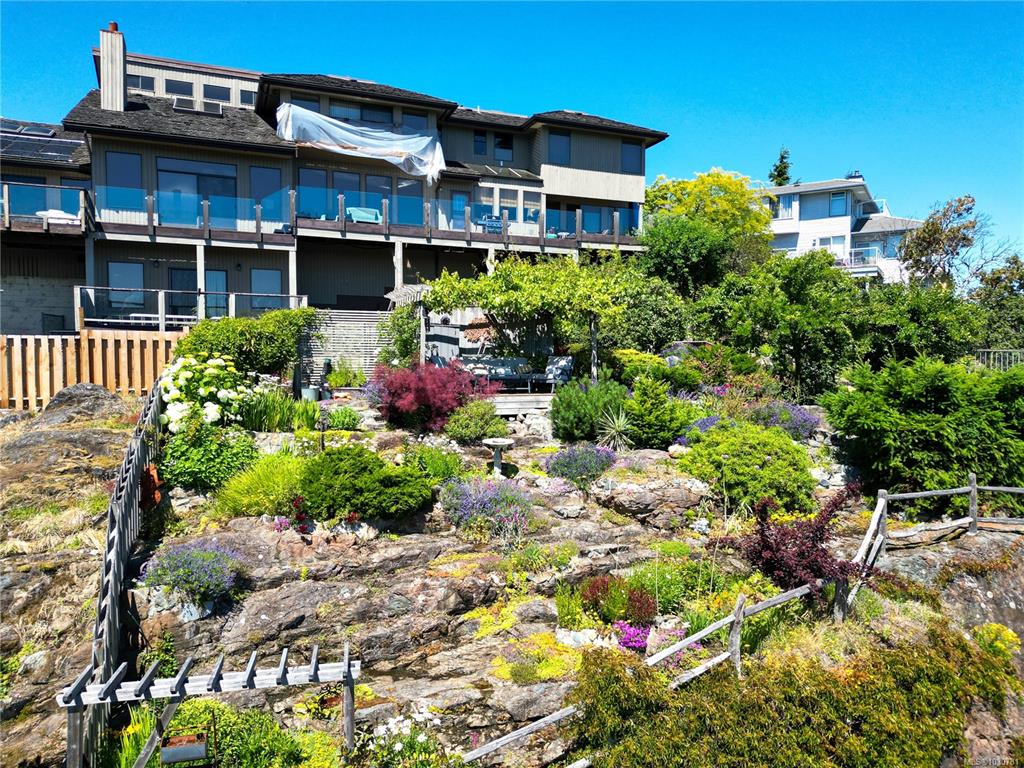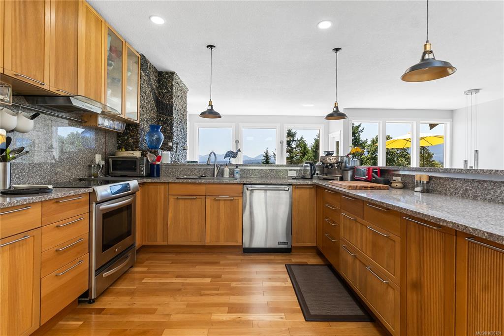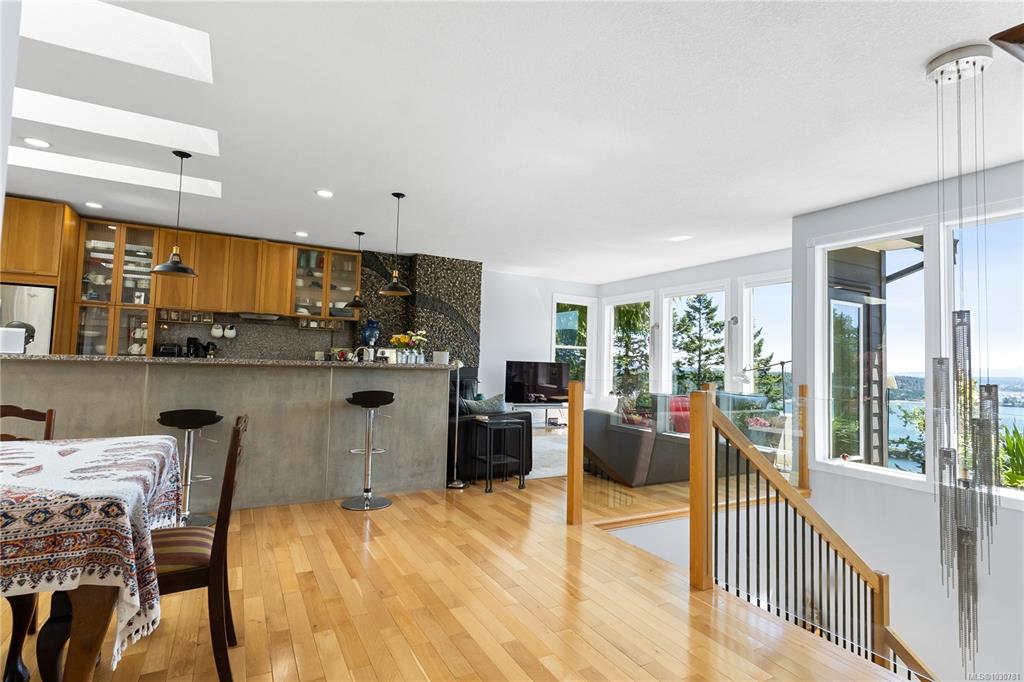 STUNNING OCEAN & MOUNTAIN VIEWS! This immaculate executive residence overlooks Departure Bay & features panoramic vistas and natural light. The gourmet kitchen offers oak cabinetry, granite counters, and a functional layout, while the elegant dining room with skylights opens to a rear patio. A cozy wood-burning fireplace and access to a south-facing deck highlight the living room. The spacious primary suite has a luxurious 5-pce ensuite & generous wardrobe. A 2nd bedroom with private patio and modern main b...