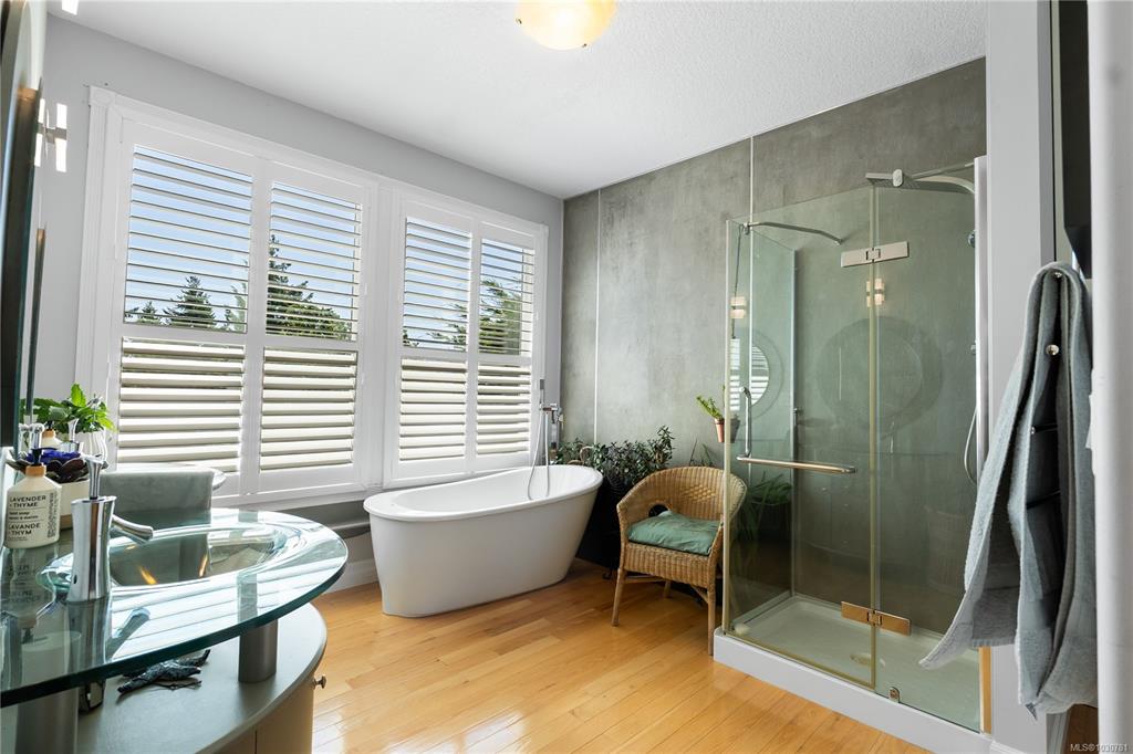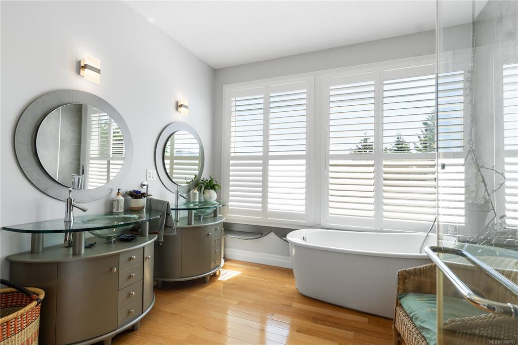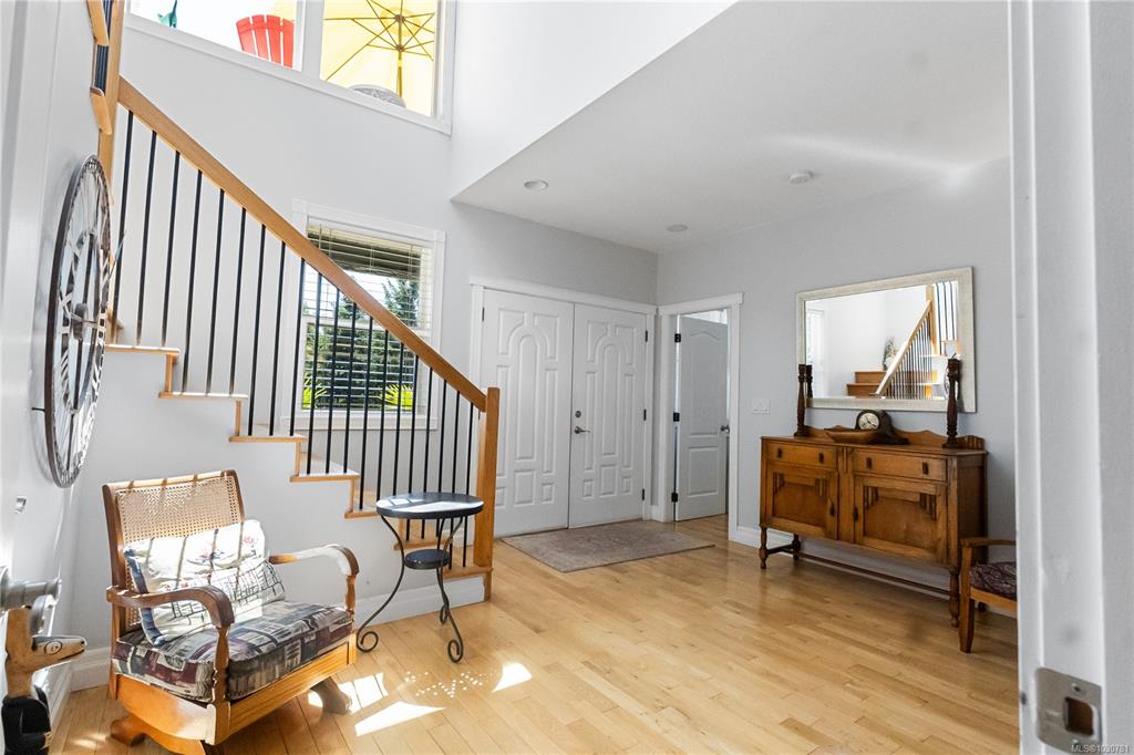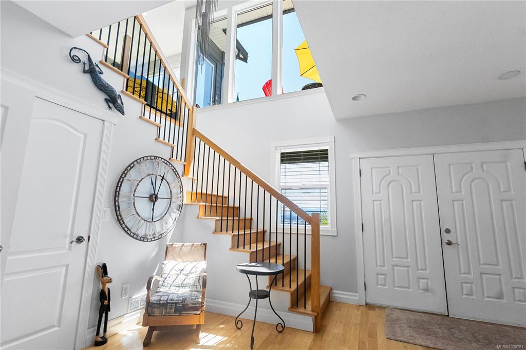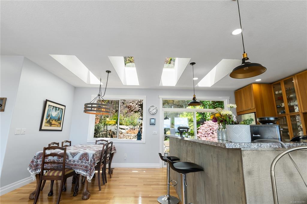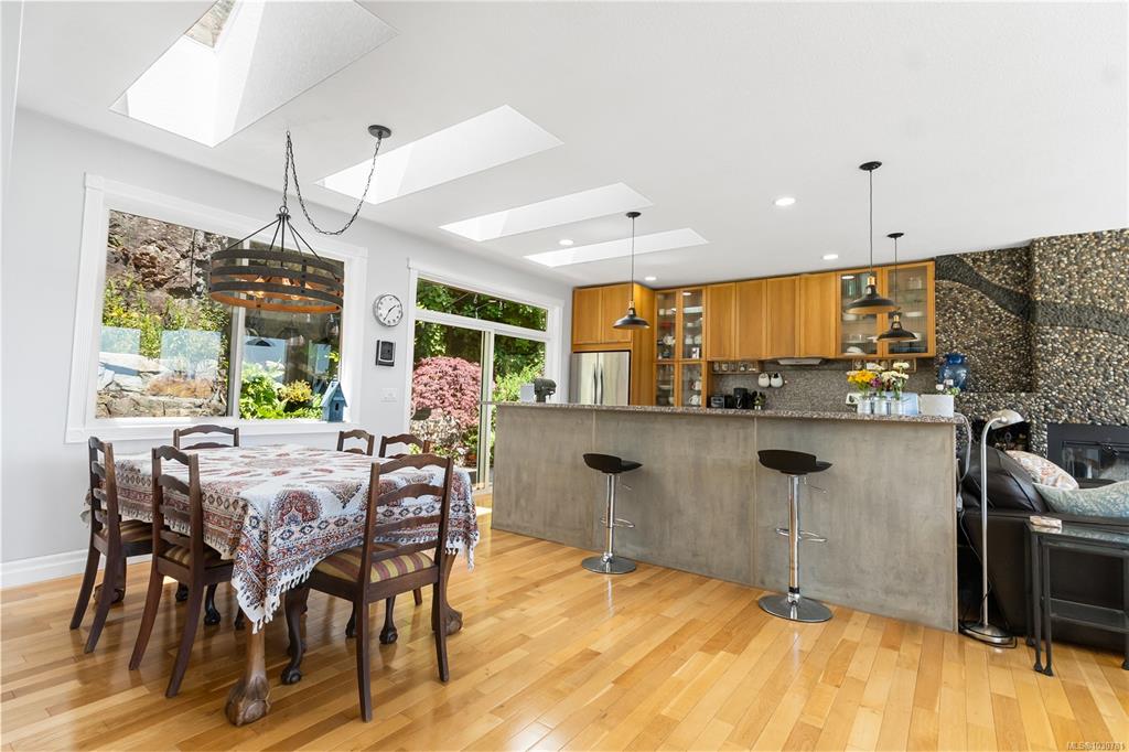STUNNING OCEAN & MOUNTAIN VIEWS! This immaculate executive residence overlooks Departure Bay & features panoramic vistas and natural light. The gourmet kitchen offers oak cabinetry, granite counters, and a functional layout, while the elegant dining room with skylights opens to a rear patio. A cozy wood-burning fireplace and access to a south-facing deck highlight the living room. The spacious primary suite has a luxurious 5-pce ensuite & generous wardrobe. A 2nd bedroom with private patio and modern main b...