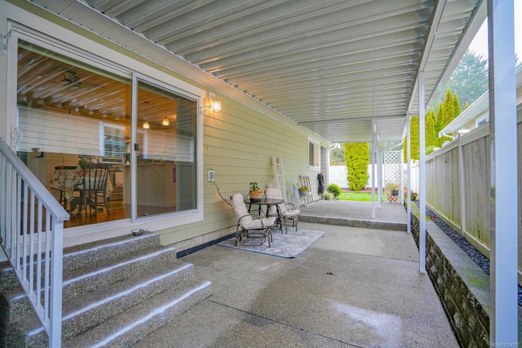 Welcome to this well-maintained 3-bedroom, 2 bath modular home offering 1,518 sq ft in Mountain View Estates (Alberni Valley), a quiet, tidy and well-cared-for community. Enjoy the front patio and easy-care gardens, with green space along one side and behind for added privacy. Inside, a bright, spacious living room features a bay window and scenic Mt. Arrowsmith views. The kitchen offers abundant cabinetry, an island, and a functional layout that flows into the dining area with access to a large, covered pa...