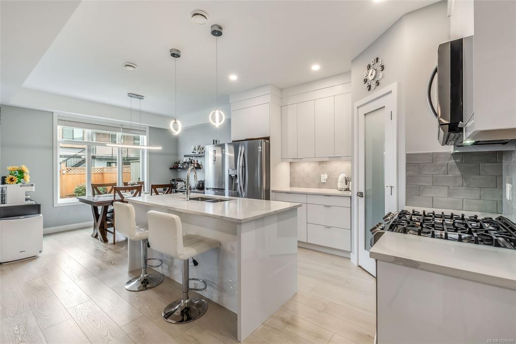 SHARPLY PRICED! Beautifully maintained detached duplex offering modern comfort and functional family living. This home features approximately 1,788 sqft with 3 bedrooms plus a den and 3 bathrooms. The bright open-concept main floor includes a contemporary kitchen with quartz countertops, stainless steel appliances, gas range, and a large island. The inviting living area features a fireplace and access to a partially covered patio. Upstairs offers a spacious primary bedroom with walk-in closet and ensuite, p...