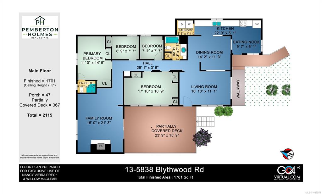 BEST VALUED HOME! Looking for space, this 1,751 sq.ft. double-wide is the one! Prime location beside the Galloping Goose Trail with gated access, nestled in the quiet, park-like setting of stunning Lannon Creek Park. Flexible floor plan offers 3 bedrooms + den, 2 baths, bright living room with access to a sunny south-facing deck, galley kitchen with breakfast nook, formal dining, and a massive family room with wood burning fireplace. Updates include heat pump with A/C, high-efficiency vinyl windows (all but...