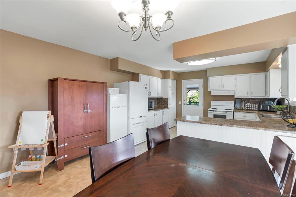 CHARMING FAMILY HOME WITH IN-LAW SPACE & WORKSHOP - This classic westcoast/split-level 4 bed/3 bath home is located in Quamichan Heights, a peaceful neighbourhood, just minutes to town and schools. 3 bed/2 bath on main level with hardwood floors and wood-burning fireplace. Spacious and bright kitchen with plenty of cabinets and an adjoining dining room with slider to the entertainment-sized covered deck with lovely mountain and valley views. Downstairs features a comfortable 1bed/1bath in-law suite with kit...