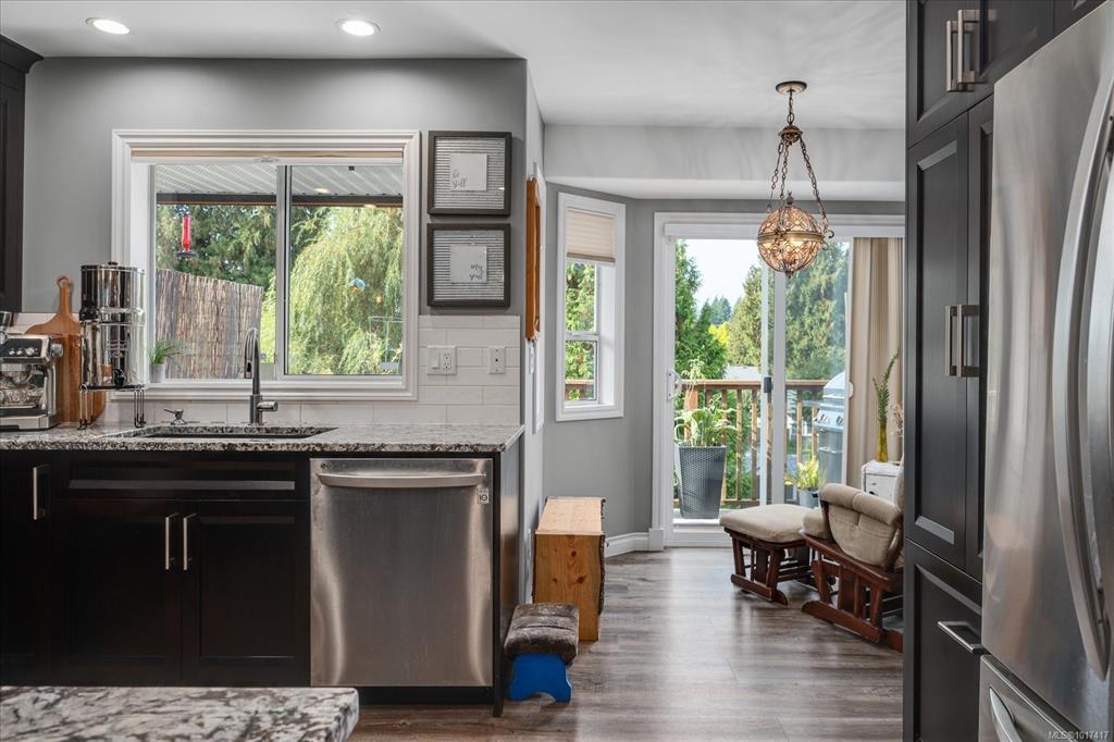 You've found a splendid updated family home on a large corner lot in the cul-de-sac in one of North Nanaimo's best neighbourhoods of Parkwood Estates! This 4 bed 3 bath 2164sq ft. home saw extensive renovations in recent years! Steps to shopping, schools, and parks, this location is sought after for a reason! Upstairs, the stylish open concept kitchen, living, dining area exudes elegance and bold styling blended with function. Step out onto your back deck and enjoy beautiful evening skies. The primary bedro...