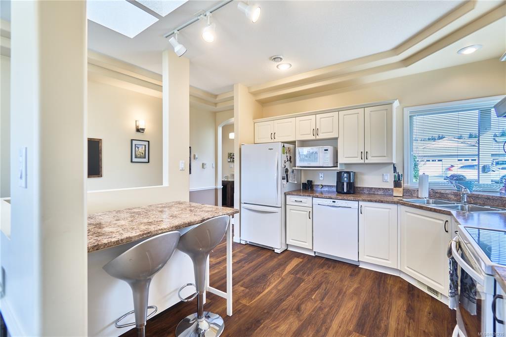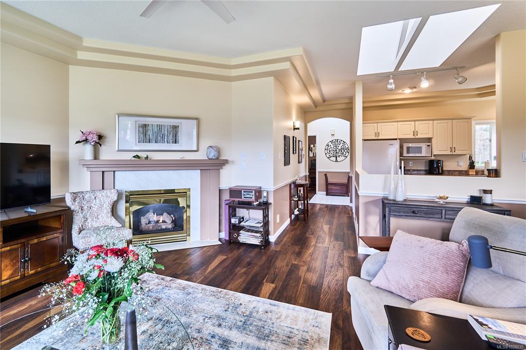 Welcome to Uplands Village, where convenience meets comfort. Situated directly across from shops, cafés, and everyday essentials, this location offers effortless walkability in the heart of Nanaimo. Enjoy morning coffee just steps away, pick up groceries with ease, and take advantage of the nearby Oliver Woods Community Centre and surrounding parks. This beautifully maintained patio home is immaculate and move-in ready. The bright, open-concept layout is enhanced by vaulted ceilings and skylights and a priv...