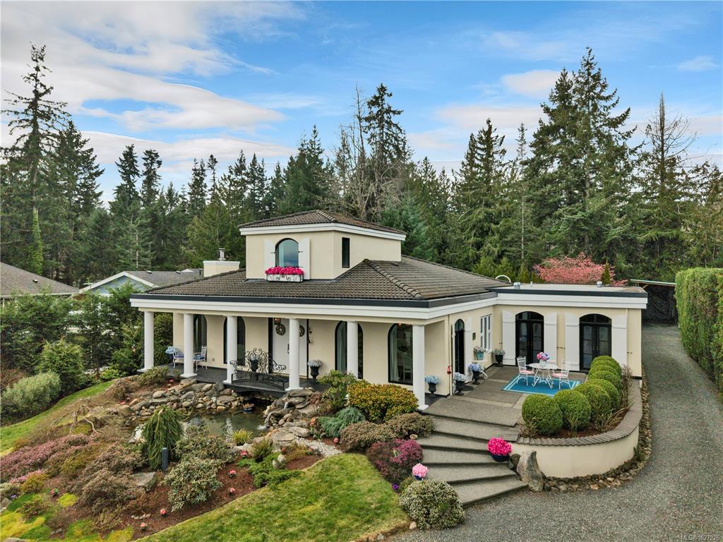 Beautiful ocean view country estate nestled near the heart of Union Bay! This unique 2 bedroom, 3 bathroom home boasts French colonial architecture & custom features throughout. From imported wrought iron railings and gates, to floor to ceiling coved windows & complementary lighting fixtures, every inch of the home has been thoughtfully built and curated. The primary bedroom offers a spacious walk-in closet & 4pc ensuite with soaker tub & tiled shower with 3 shower head features. A floating spiral staircase...