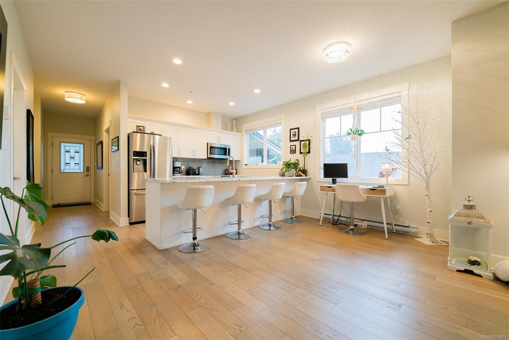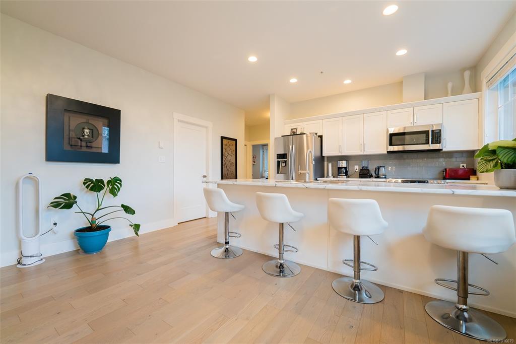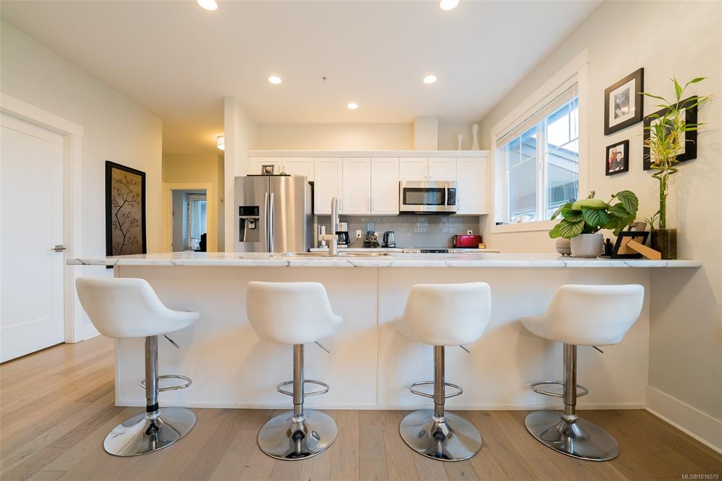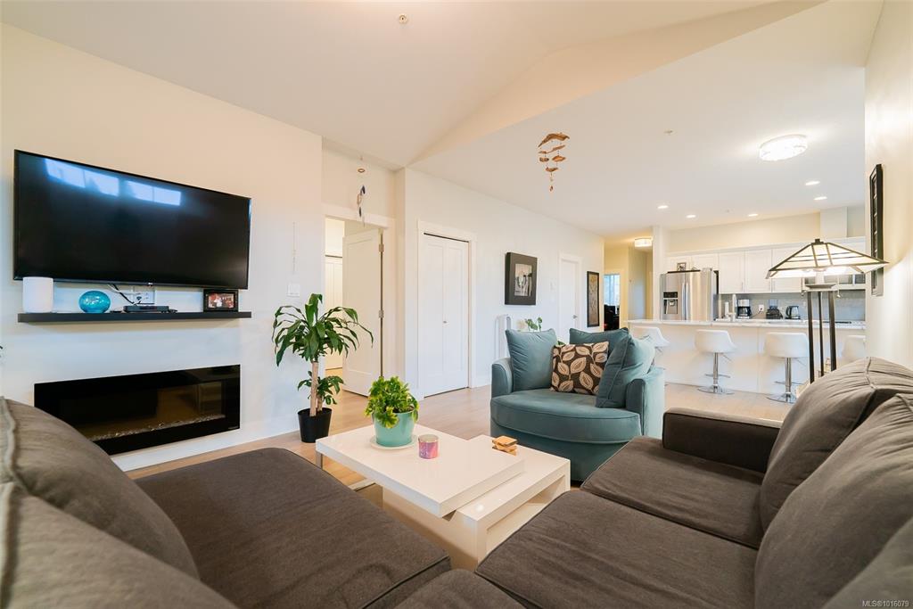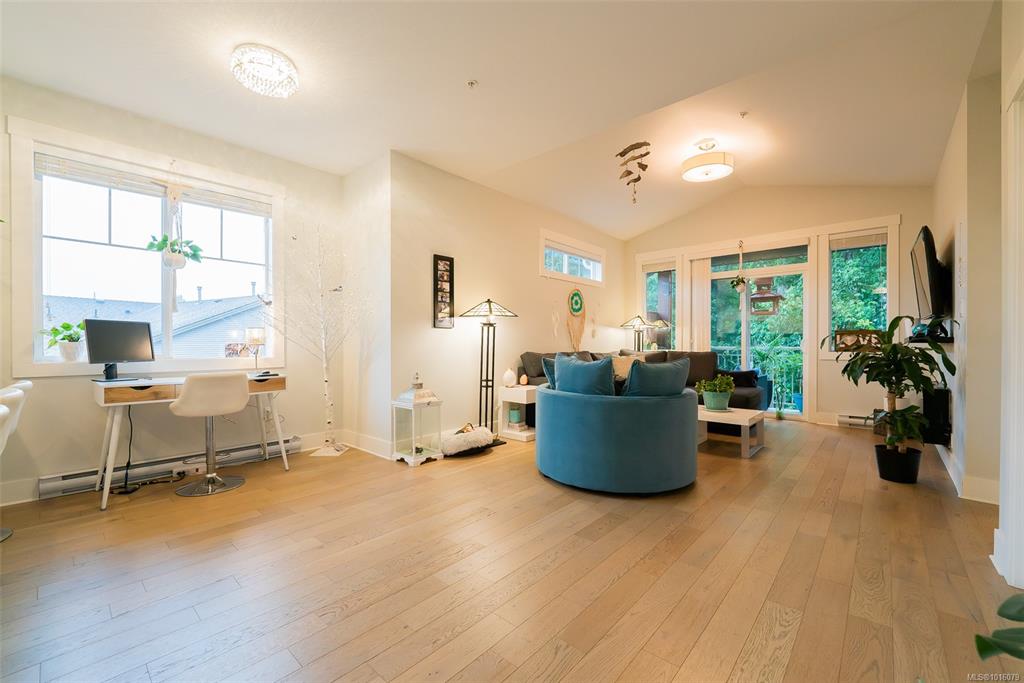 Pet-friendly & perfect for first-time buyers! Top-floor unit with soaring 10' vaulted ceilings and high-end finishes throughout. Bring your furry friend—Strata allows 1 dog any size and/or 1 cat (or 2 cats)! This 2 bed + den layout offers flexibility for a home office or gym. Entertain in style with an oversized 11' island, stainless appliances, and open-concept kitchen/living space. The spacious primary bedroom features a 4-piece ensuite and generous closets. Enjoy two covered decks—one overlooking peacefu...