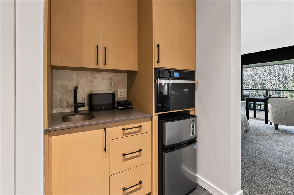 This beautifully appointed studio suite offers the perfect escape to Ucluelet, on the rugged west coast of Vancouver Island. Enjoy the convenience of a fully equipped kitchen featuring sleek Miele appliances, ideal for preparing your favorite meals after a day of adventure. Unwind in the elegant bathroom, complete with a indulgent soaker tub and a separate, modern shower. The inviting living area provides a comfortable haven for relaxation, whether you're returning from a day at the nearby beach or explori...