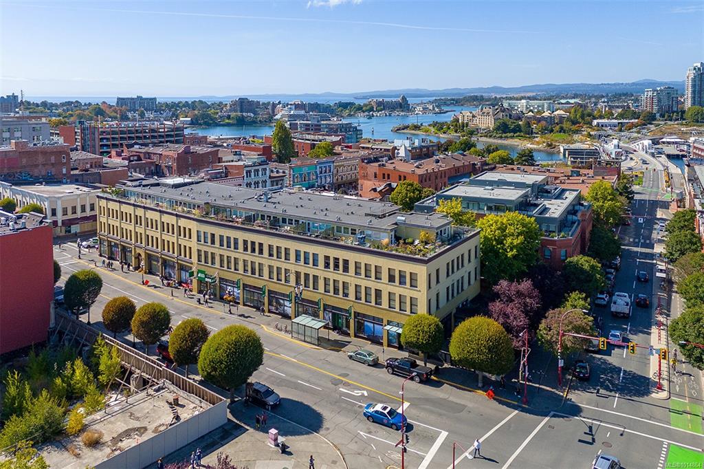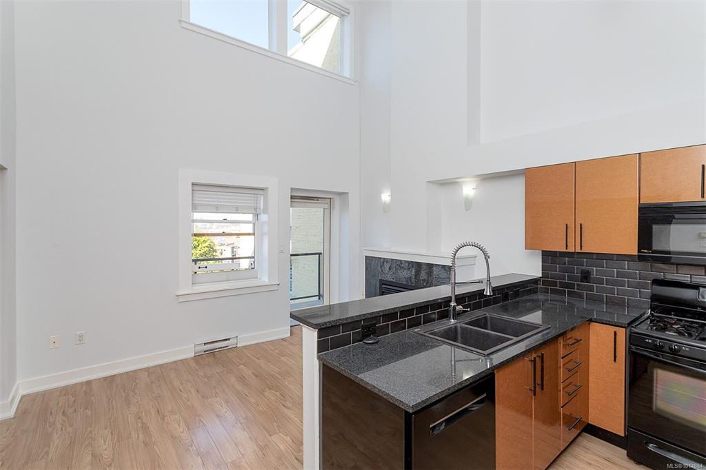 LIVE THE DOWNTOWN LIFESTYLE AT “THE VOGUE” Where heritage charm meets modern convenience.This 2006 heritage conversion set in the heart of Old Town Victoria truly has it all.2 bd, 2 bth, 2 level penthouse loft blends contemporary design with striking old-growth timbers, creating one-of-a-kind living experience.Main living is open concept with impressive 21 ft ceilings & cozy gas F/P.The stylish kit features lots of cupboard space, stone c/tops, S/S appl, gas range & secret pantry!4 pce bth with cheater to 2...