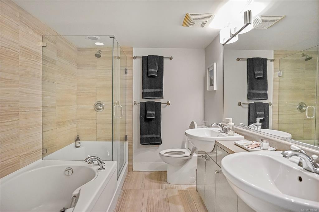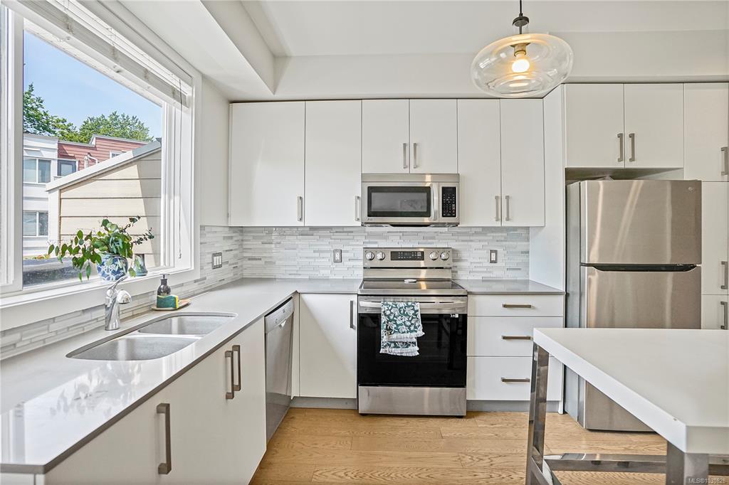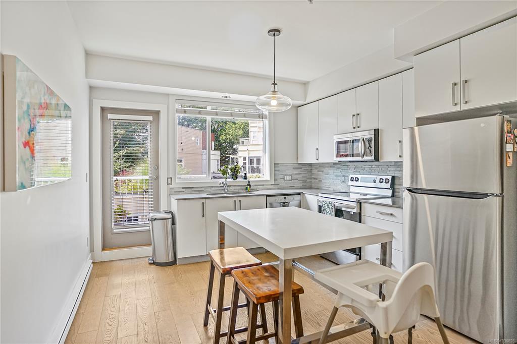Nestled on the tranquil Simcoe side of this sought-after complex, this 3-level, 2BED/3BATH townhome is perfectly placed in the heart of James Bay. At the main entry you're greeted with an open-concept living space featuring a cozy gas fireplace, dining area, and a bright, airy kitchen with upgraded cabinets, backsplash, and quartz countertops. A private sw facing balcony with BBQ hook-up is ideal for summer cooking and outdoor entertaining. Upstairs, the spacious master bedroom boasts custom barn doors lead...