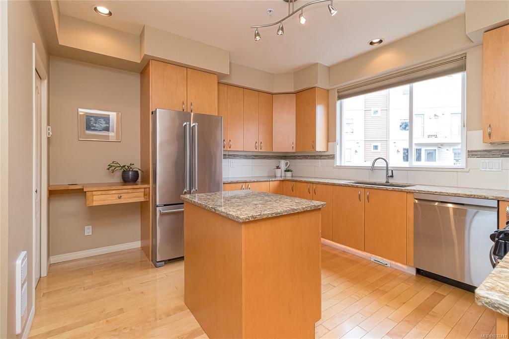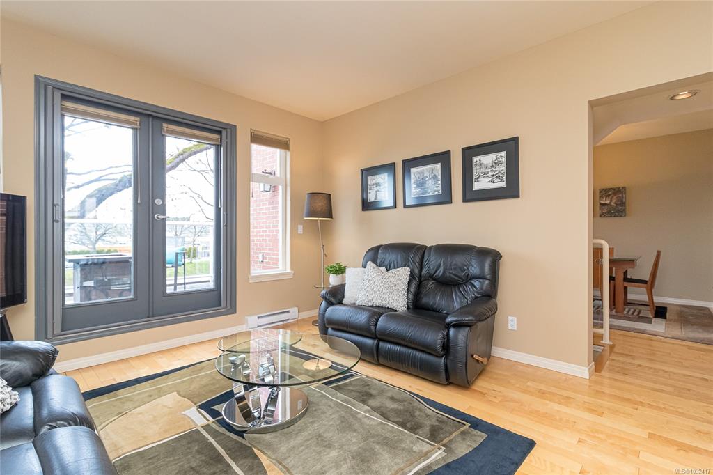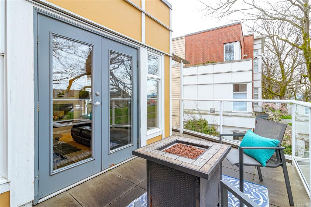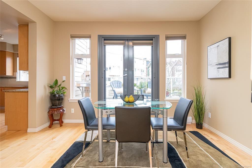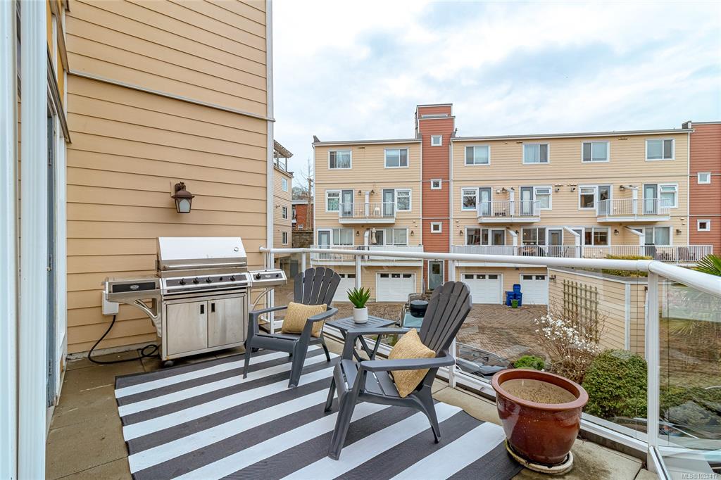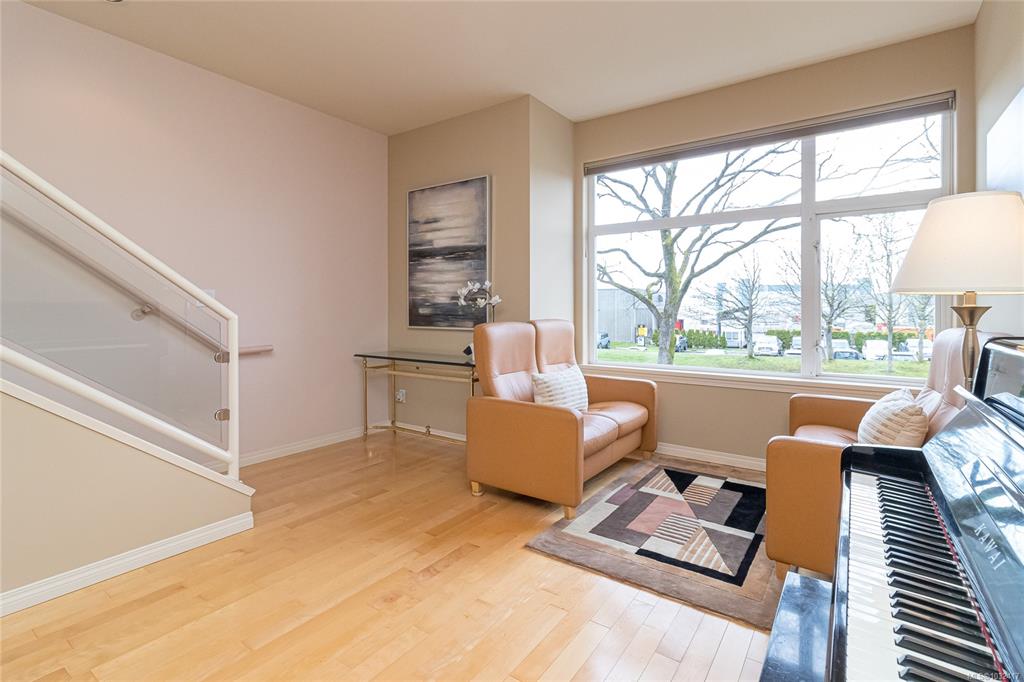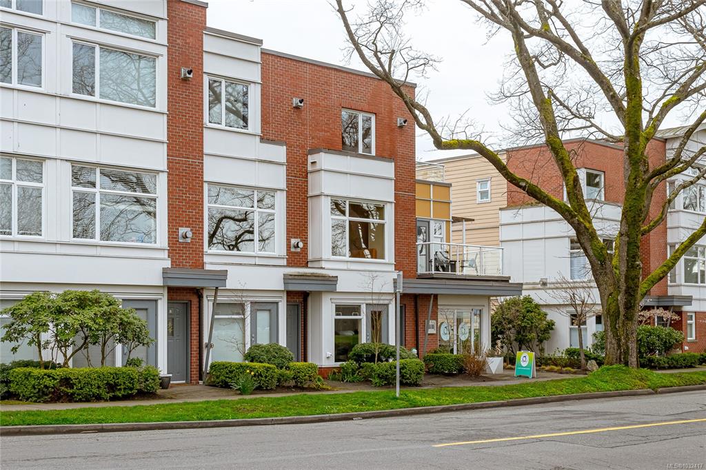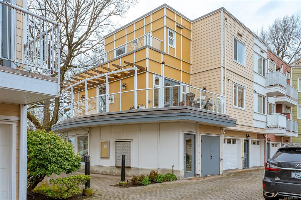 James Bay bright and spacious townhome on iconic Dallas Road, just steps from Fisherman’s Wharf. Enjoy peekaboo ocean views and watch cruise ships come and go from this exceptional home, the largest in the complex, offering a rare live/work opportunity ideal for a home-based business. Soaring 9-foot ceilings and hardwood floors enhance the airy main level. The gourmet kitchen features quartz countertops and a walk-in pantry. French doors open to sunny front and rear decks, creating seamless indoor-outdoor l...