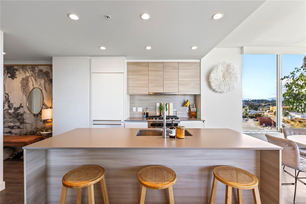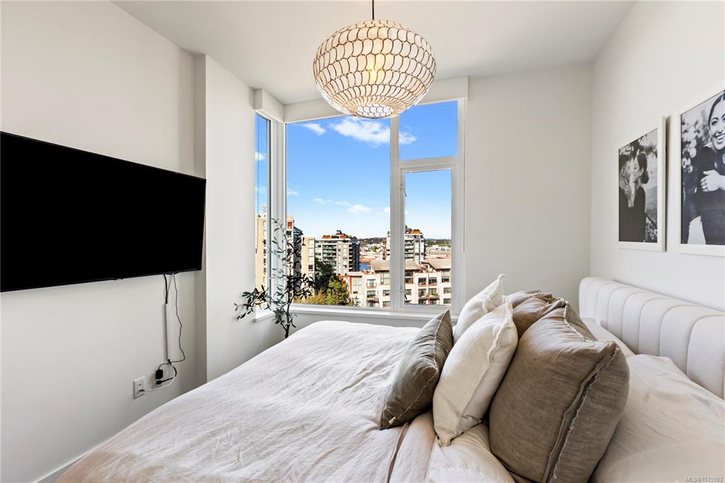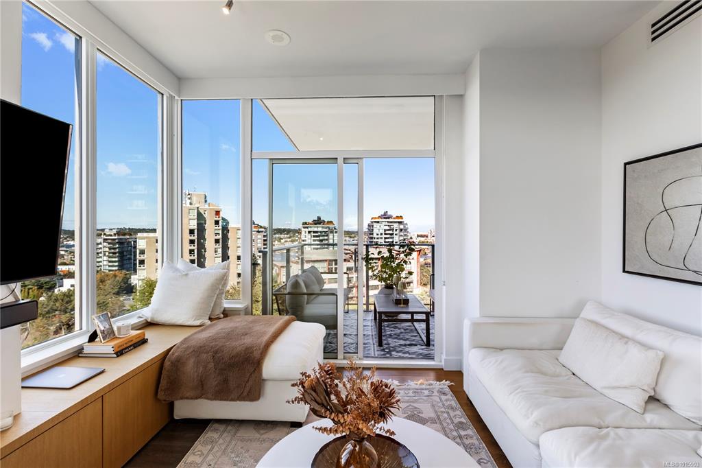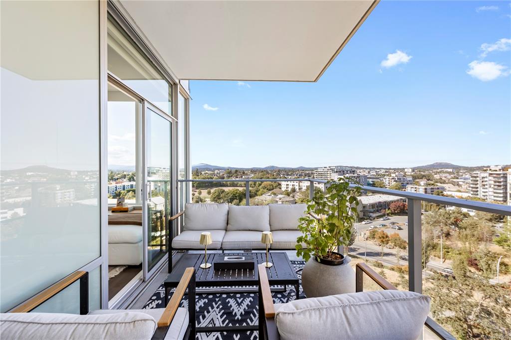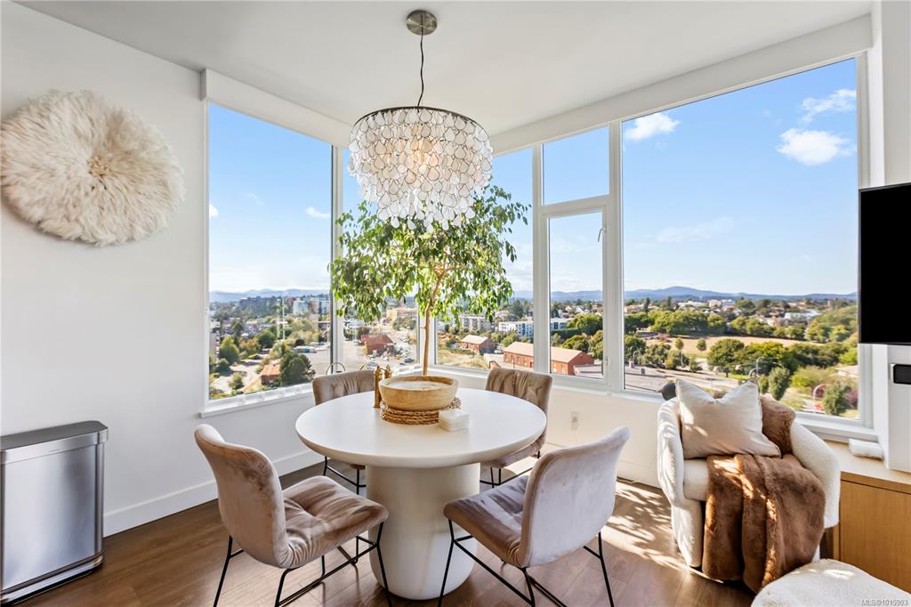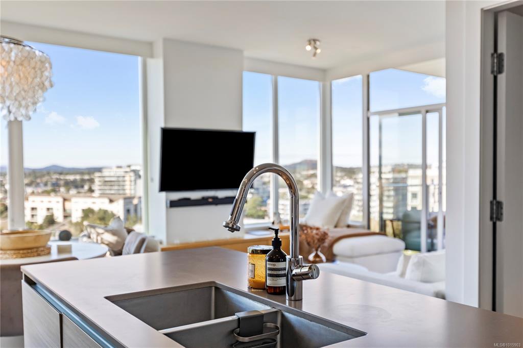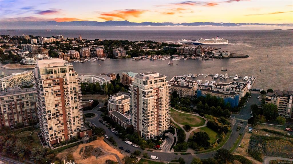 Welcome to Encore, a premier steel and concrete residence by BOSA. This bright, updated 9th-floor corner suite features dual wrap-around windows facing east, north, and west, bathing the home in natural light. Experience breathtaking views of crimson sunrises to golden sunsets over the mountain, city and ocean, including the iconic Legislative Buildings, from your spacious balcony. Enjoy easy access to cafés, entertainment, parks, and waterfront paths This 2 bed/2 bath condo offers a seamless open-concept ...