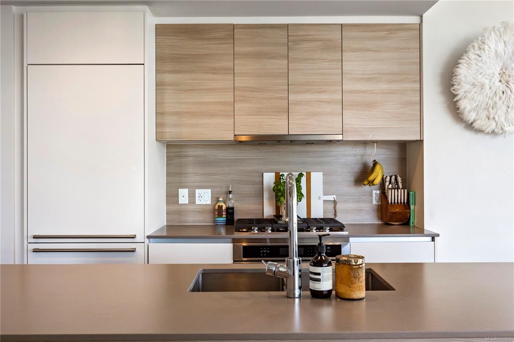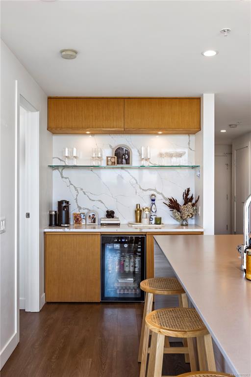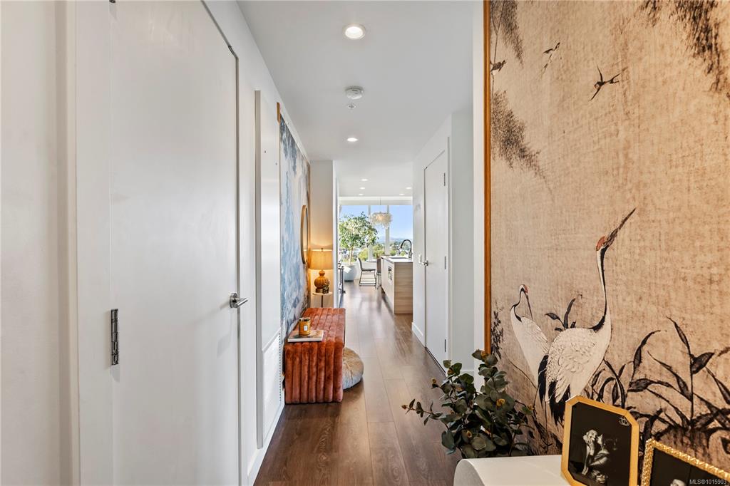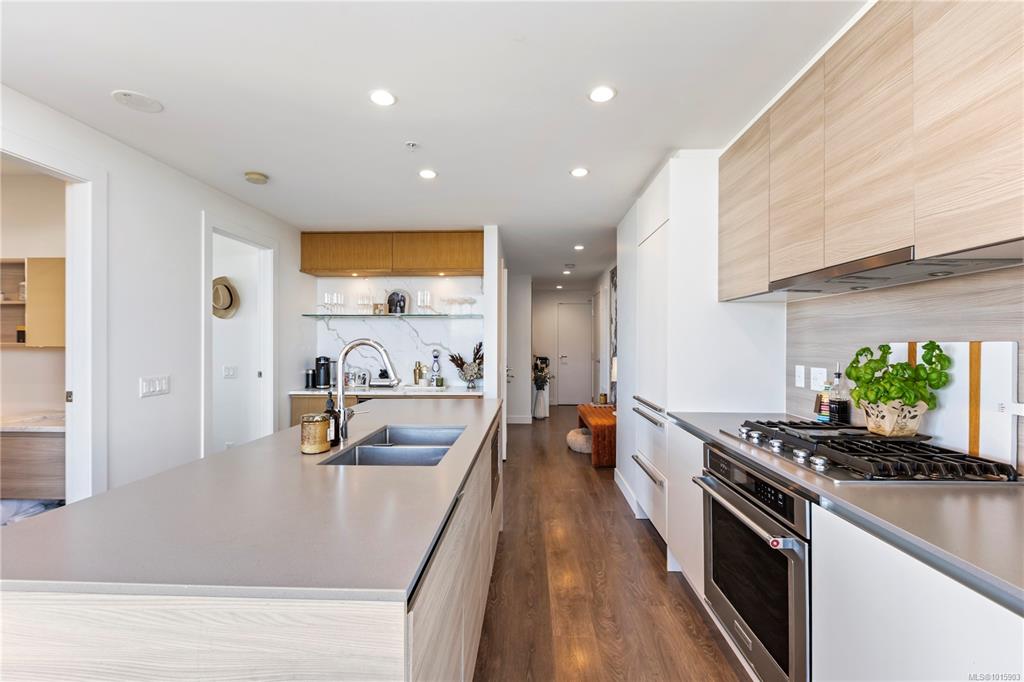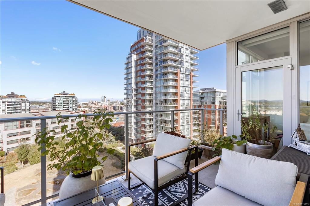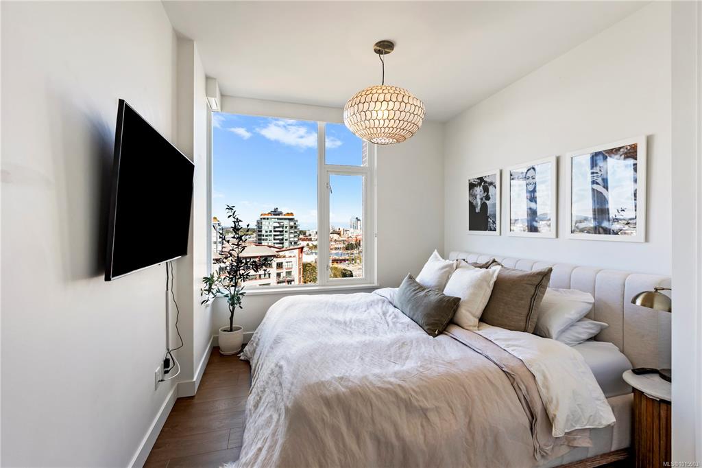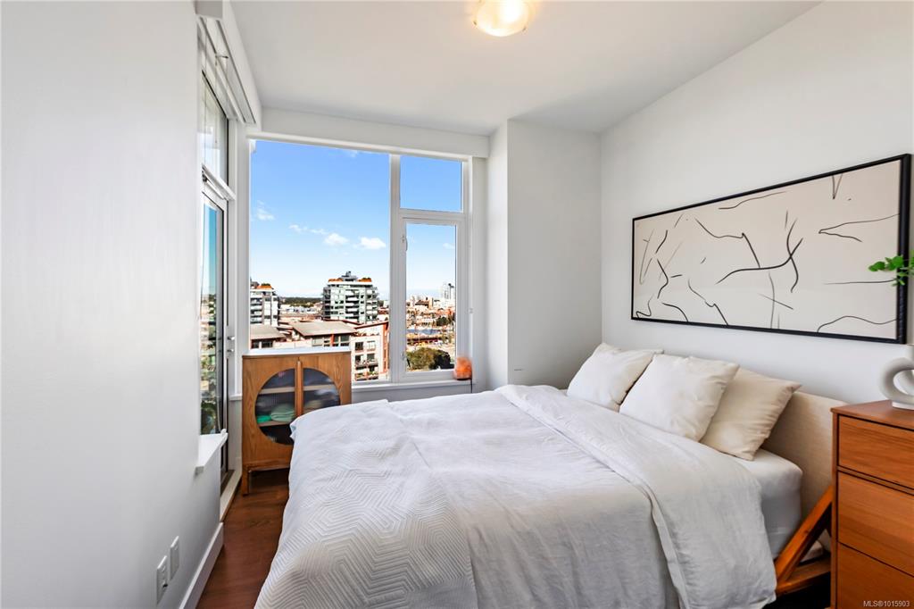 Welcome to Encore, a premier steel and concrete residence by BOSA. This bright, updated 9th-floor corner suite features dual wrap-around windows facing east, north, and west, bathing the home in natural light. Experience breathtaking views of crimson sunrises to golden sunsets over the mountain, city and ocean, including the iconic Legislative Buildings, from your spacious balcony. Enjoy easy access to cafés, entertainment, parks, and waterfront paths This 2 bed/2 bath condo offers a seamless open-concept ...