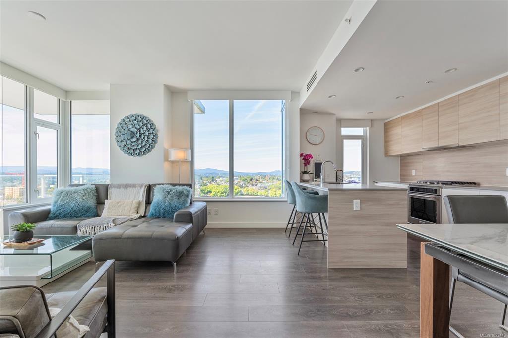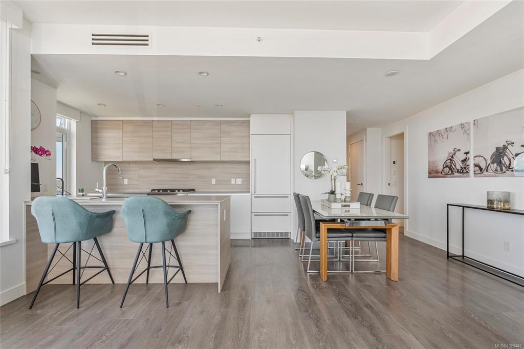 Welcome to the Encore at Bayview, where luxury and lifestyle meet. This spacious 2 bed, 2 bath condo offers 1,061 sq ft of modern living with high-quality finishes throughout. The open concept kitchen features sleek quartz countertops, stainless steel appliances, a gas cooktop, and ample storage. Bright and airy, the living space is enhanced by wide plank laminate flooring and large windows that flood the home with natural light. The spa-inspired bathrooms include tile flooring, quartz counters and contempo...