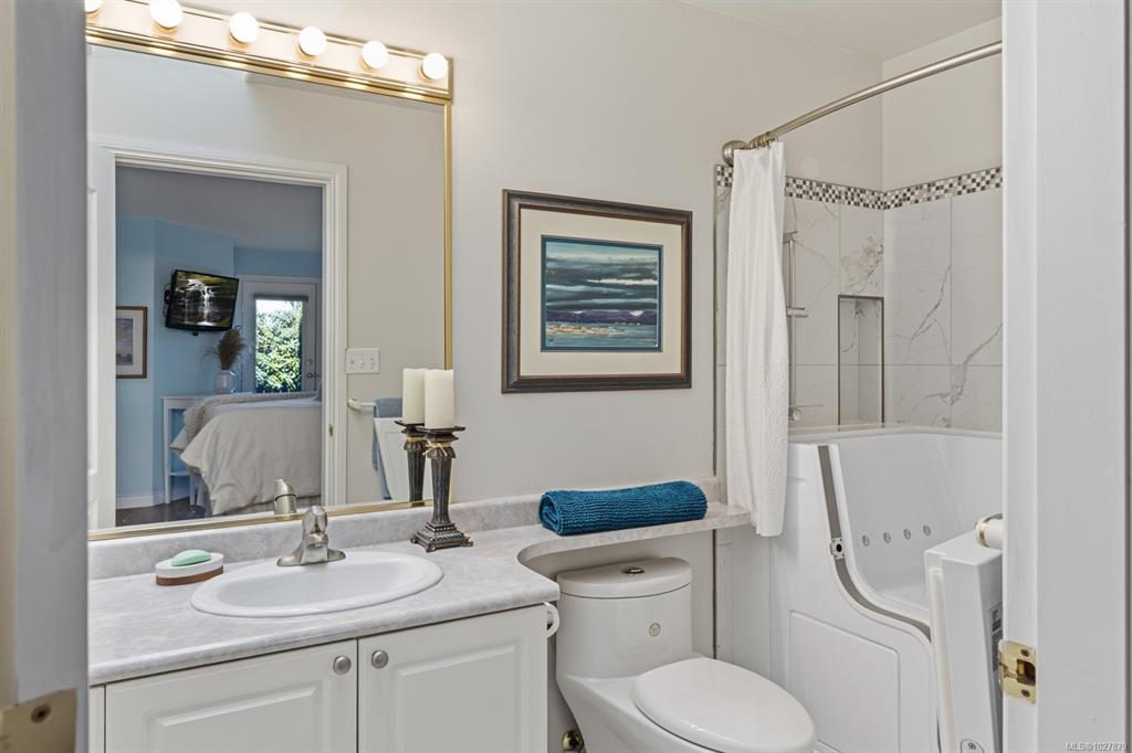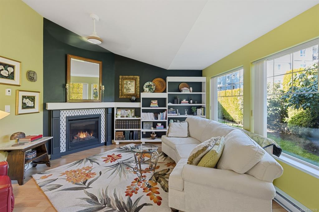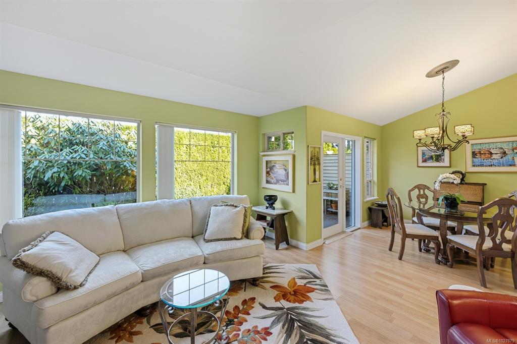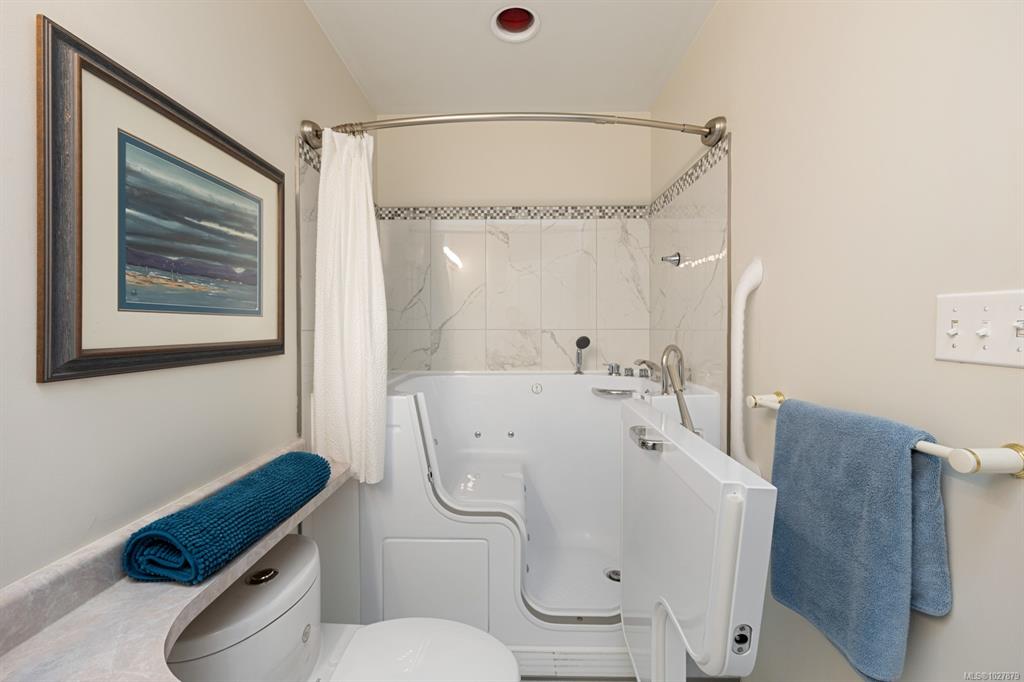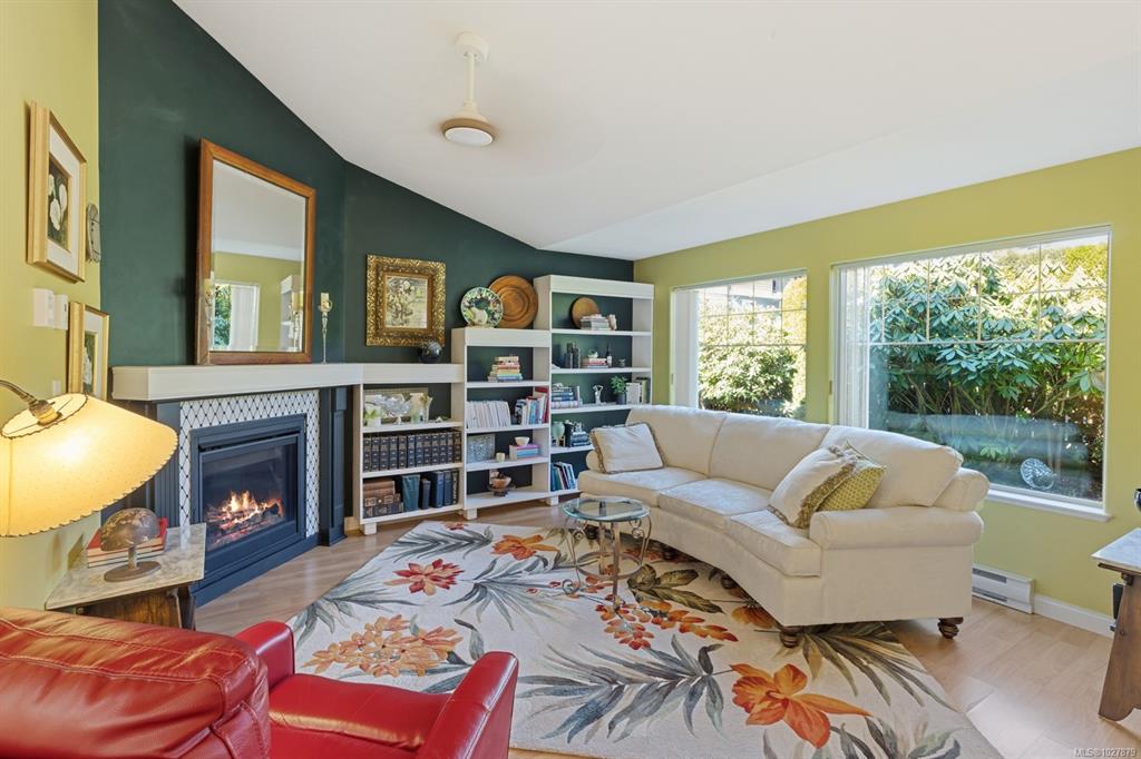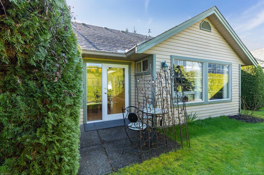 Welcome to this thoughtfully designed patio home offering a cozy cottage feel in a desirable Comox location. Tucked into a private, quiet cul-de-sac with beautiful landscaping, this accessible 2-bed, 2-bath home features a bright kitchen with updated counters. The living room is highlighted by vaulted ceilings, a skylight, and a custom gas fireplace. The spacious primary bedroom offers an ensuite with a new walk-in tub and direct access to one of two private patios. Additional upgrades include 16" of extra ...