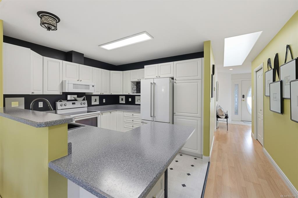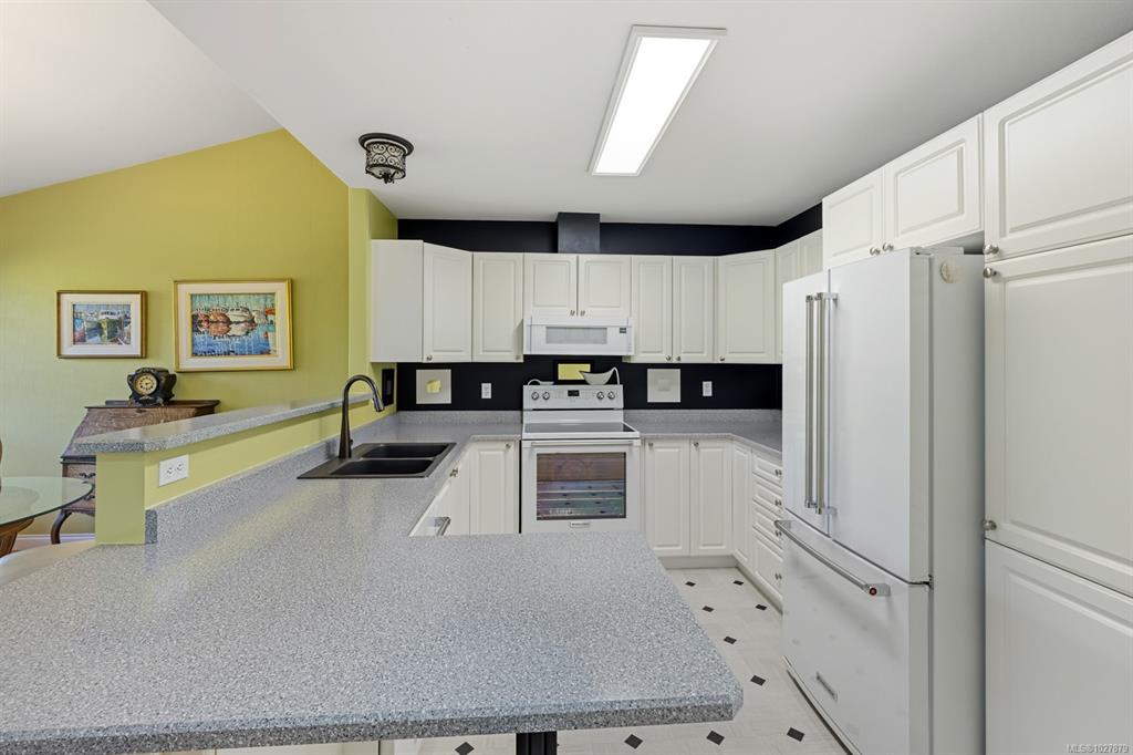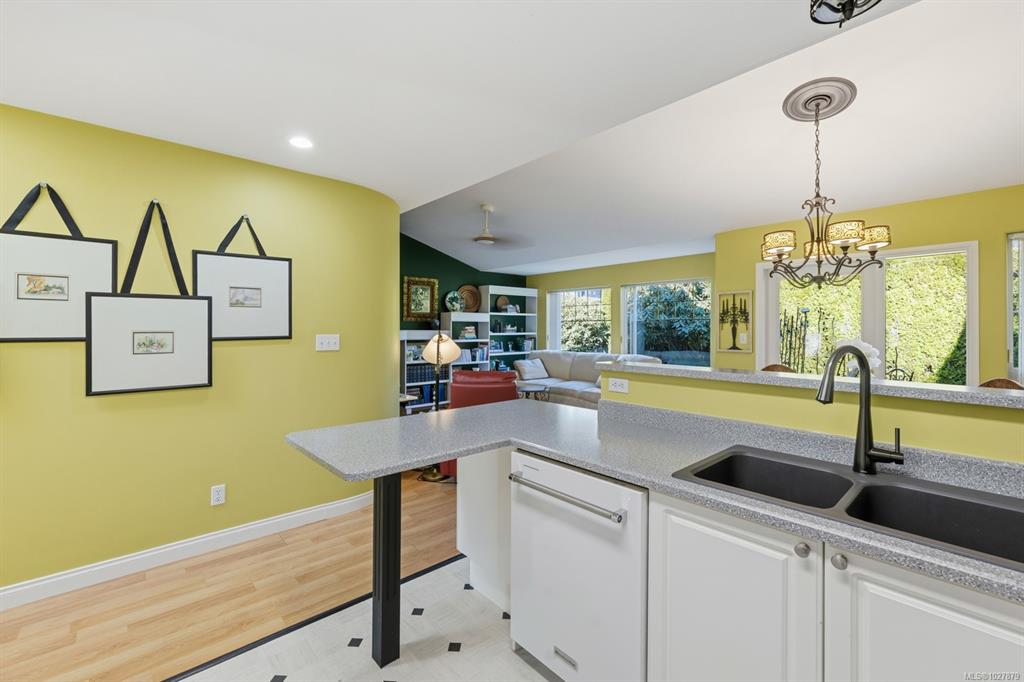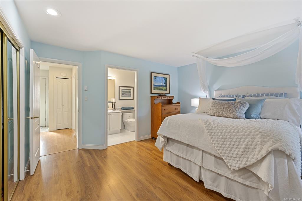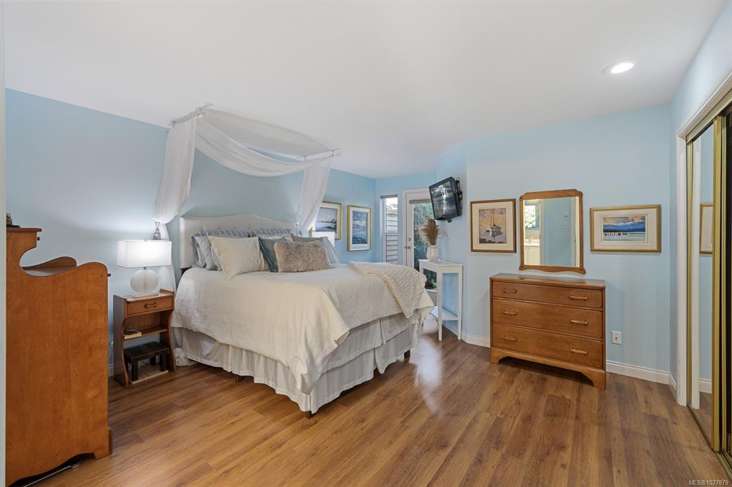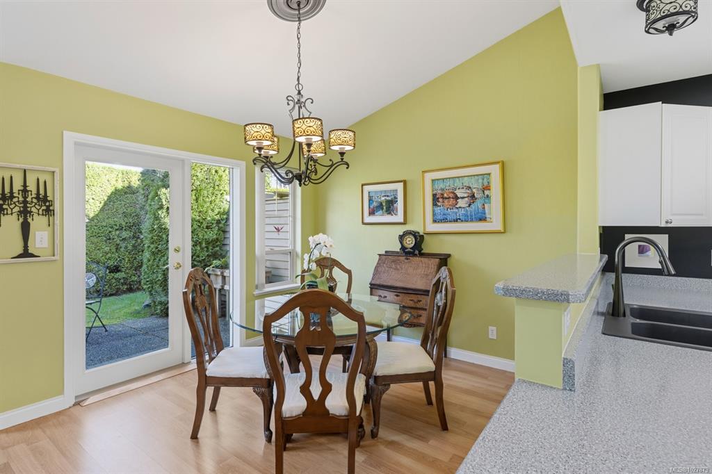 Welcome to this thoughtfully designed patio home offering a cozy cottage feel in a desirable Comox location. Tucked into a private, quiet cul-de-sac with beautiful landscaping, this accessible 2-bed, 2-bath home features a bright kitchen with updated counters. The living room is highlighted by vaulted ceilings, a skylight, and a custom gas fireplace. The spacious primary bedroom offers an ensuite with a new walk-in tub and direct access to one of two private patios. Additional upgrades include 16" of extra ...