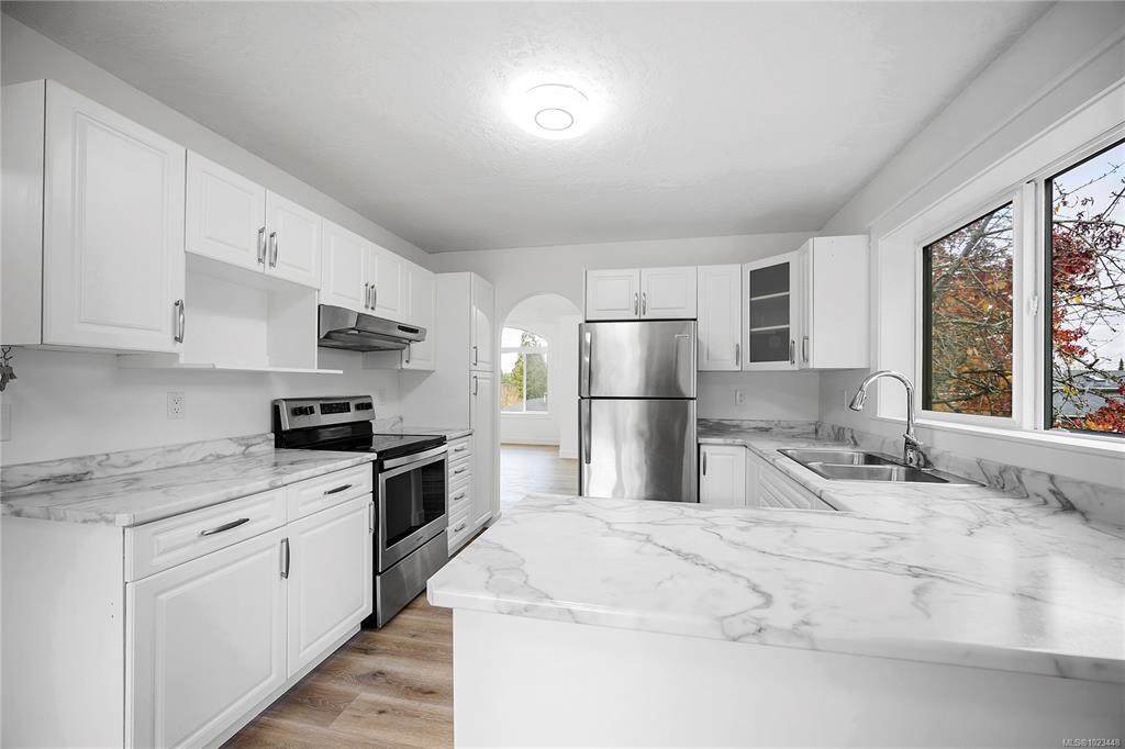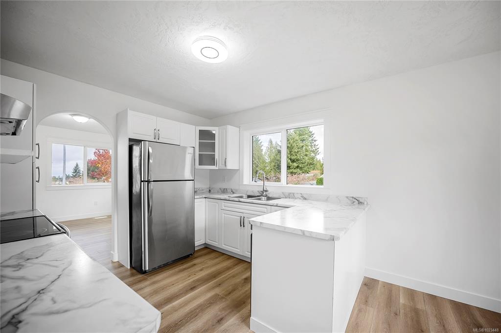 Beautifully updated 5-bed, 3-bath North Nanaimo home on a sunny corner lot with nearly 2,400 sq ft of modern living. Exterior upgrades include Hardie siding with added insulation, new standing-seam metal roof with air-gap system, new windows, furnace, and heat pump all 2025. Inside, enjoy fresh flooring, updated bathrooms, and bright, open living spaces. The main level offers a spacious kitchen/dining area, family room, and large living room with vaulted feature window, plus 3 bedrooms including a generous...