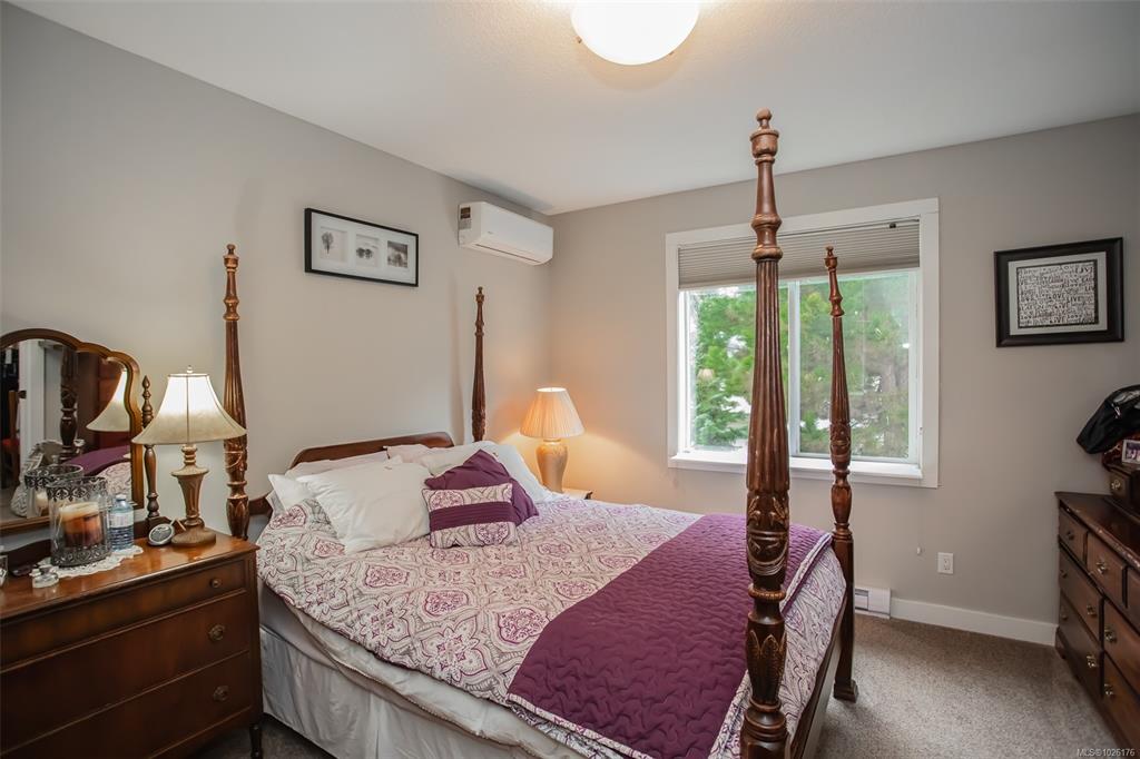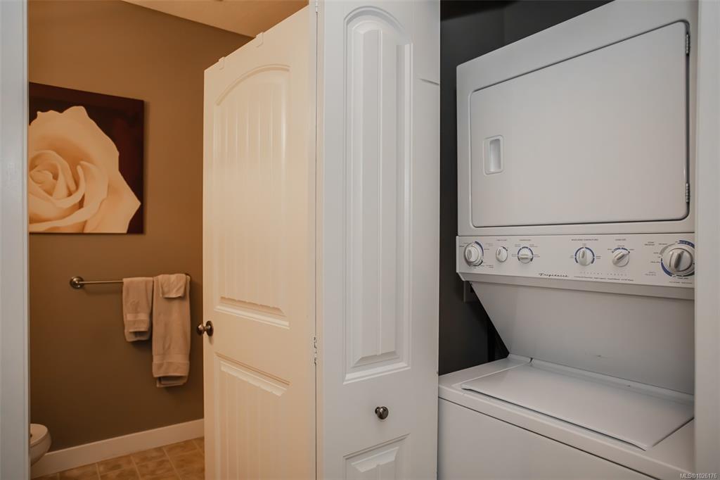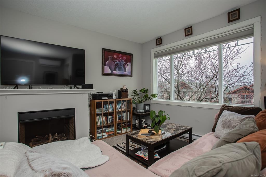 Rentals allowed. Bright upper-level ocean-view townhome with 3 bedrooms and 2 full bathrooms. The open-concept great room features 9' ceilings, large windows, a fireplace, and a ductless heat pump for efficient heating and cooling. A versatile third bedroom off the great room works well as an office. Down the hall you'll find the main bathroom and in-unit laundry. The primary suite includes a wall-mounted heat pump, walk-in closet, and 3-piece ensuite. Enjoy a sun-filled deck and the added privacy and light...